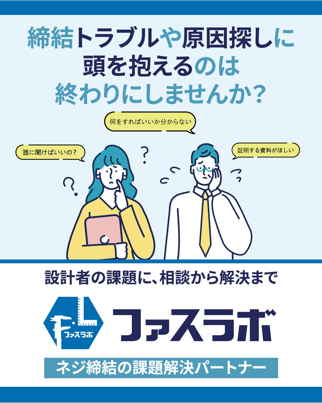 ねじ・ボルト・締結体に関するトラブルは、製品品質や安全性に直結する一方で、設計現場では十分な検証や相談先が限られているのが現状です。ファスラボは、設計者が本当に必要とする「答え」に真正面から向き合い、理論・実測・分析に基づいた実践的な支援を行います。