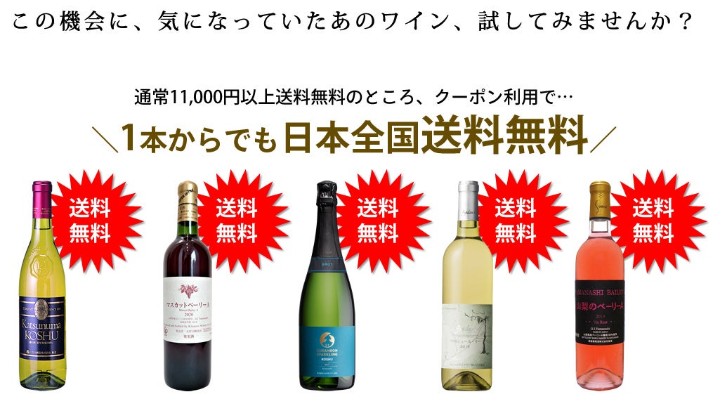 人気のGI山梨ワインが、なんと1本からでも送料無料になる注目キャンペーンを2月1日から開始!