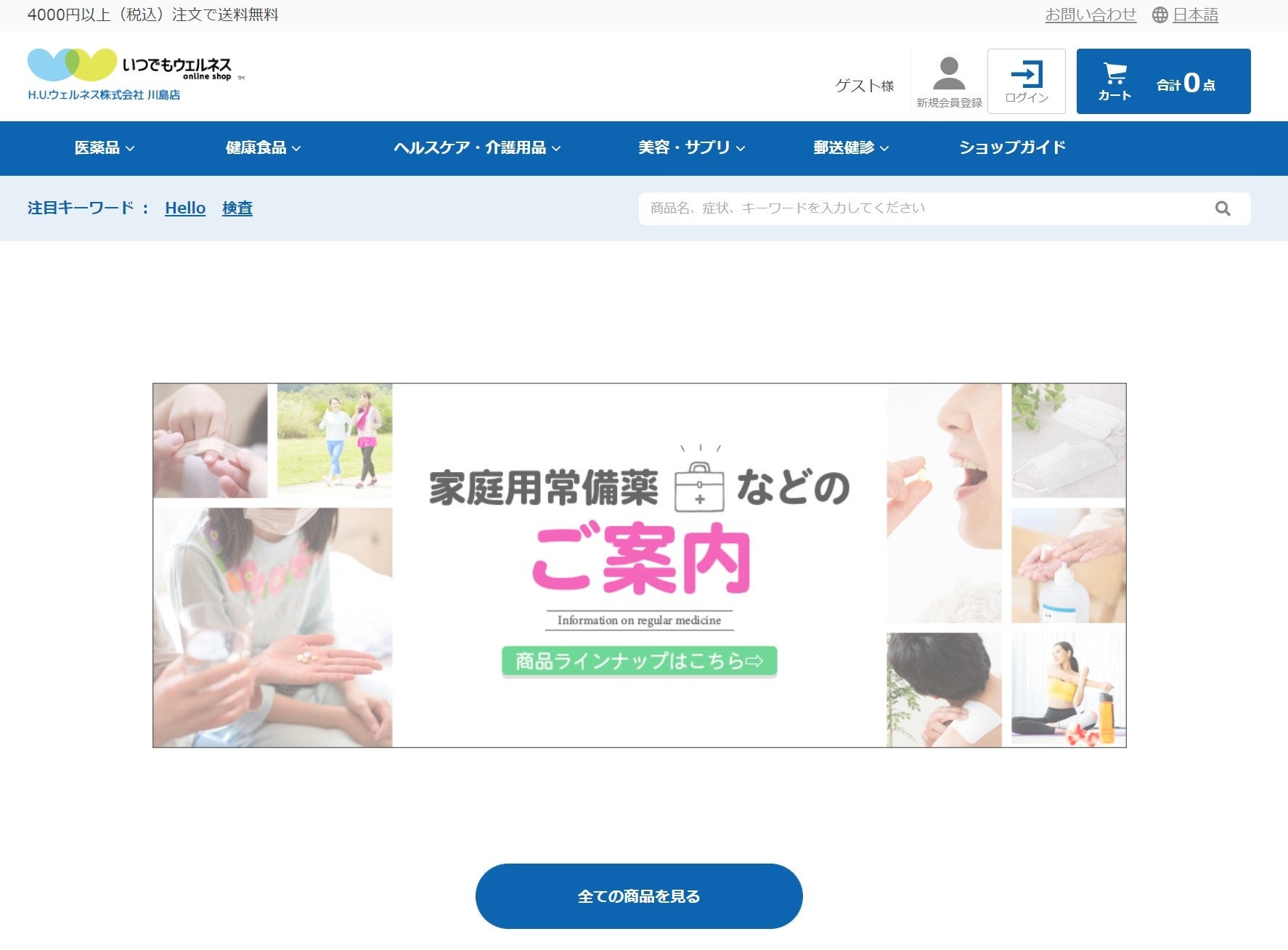 H.U.ウェルネス株式会社(本社:東京都新宿区、代表取締役:森 敏昭)は一般医薬品・郵送検査キット・健康食品・防災用品・生活用品等の販売を行うオンラインショップ「健やかショップ」の各種機能を強化し、名称も新たに「いつでもウェルネスオンラインショップ」としてオープンいたしました。
