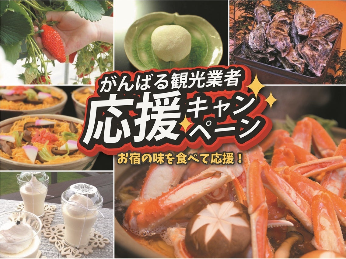 京丹後市では、事業の継続・発展のために努力する宿泊事業者を支援するため、宿泊事業者が出品するふるさと納税返礼品を取りまとめた「がんばる観光業者応援キャンペーン」特集ページを作成いたしました。