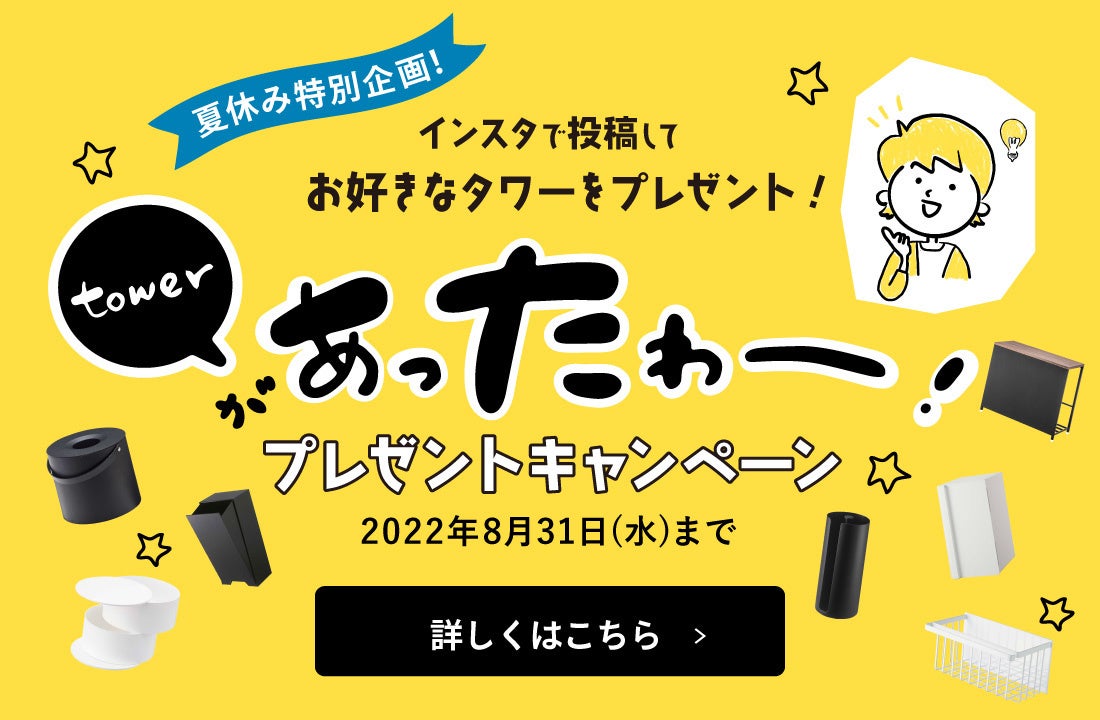 towerの使い方自慢 #towerがあったわー をInstagramでご投稿頂くと、抽選で3名様にお好きなタワーグッズをプレゼント!