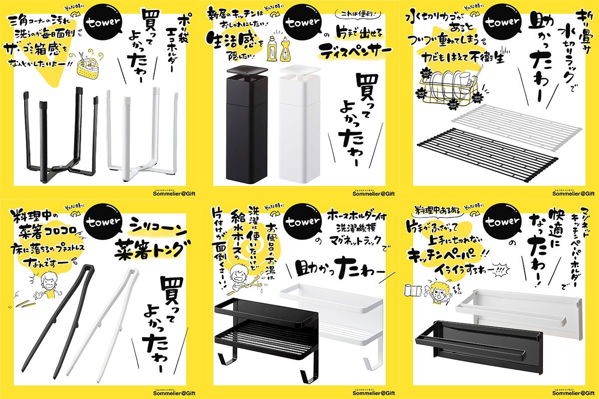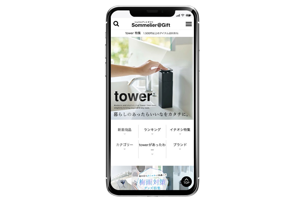 暮らしを豊かにしてくれる生活雑貨を販売するインターネット通販サイト「ソムリエ@ギフト」では収納や掃除、調理など暮らしの中の「あったらいいな」をカタチにした山崎実業 タワーシリーズが30代、40代の主婦層を中心に売上が好調。