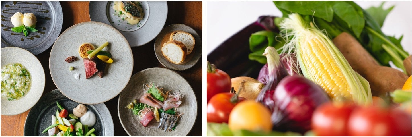 海を眺められる開放的でみなが集うレストランでは、新鮮な野菜や海産物はもちろん、五島牛や五島豚など、カラリトと想いの通じた地元生産者から直接仕入れた食材の魅力を余すことなく引き出した四季折々の食事をご用意します。夕食はコースとアラカルト、朝食は和定食。家族や気心がしれた友人との飾らない会話を、カラリトのおいしいご飯とともにお楽しみください。