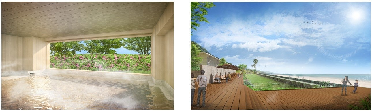 施設:ホテル客室、カフェ&レストラン、露天風呂付大浴場など