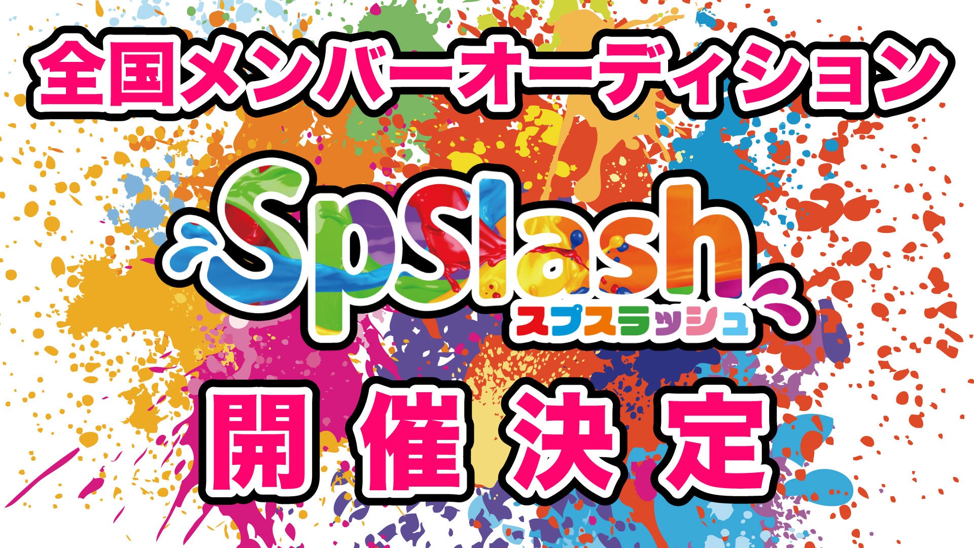 ”Spslash(スプスラッシュ)”はSplash(爆発して飛び散ったカラースプレー)とSlash(アイドル業界に斬り込みをかける勢い)をもじった造語。ステージ上を全力で駆け巡り爆発力のあるパフォーマンスで圧倒させる、新世代のアイドルグループのデビューメンバーを全国から募集!