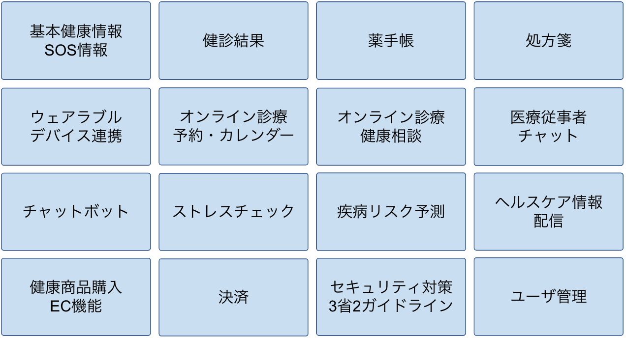 そして、このPHRアプリを言語や機能面でローカライズした日本基準の『Omi-PHR™』としてパッケージ化しました。具体的な機能は、次のとおりです。