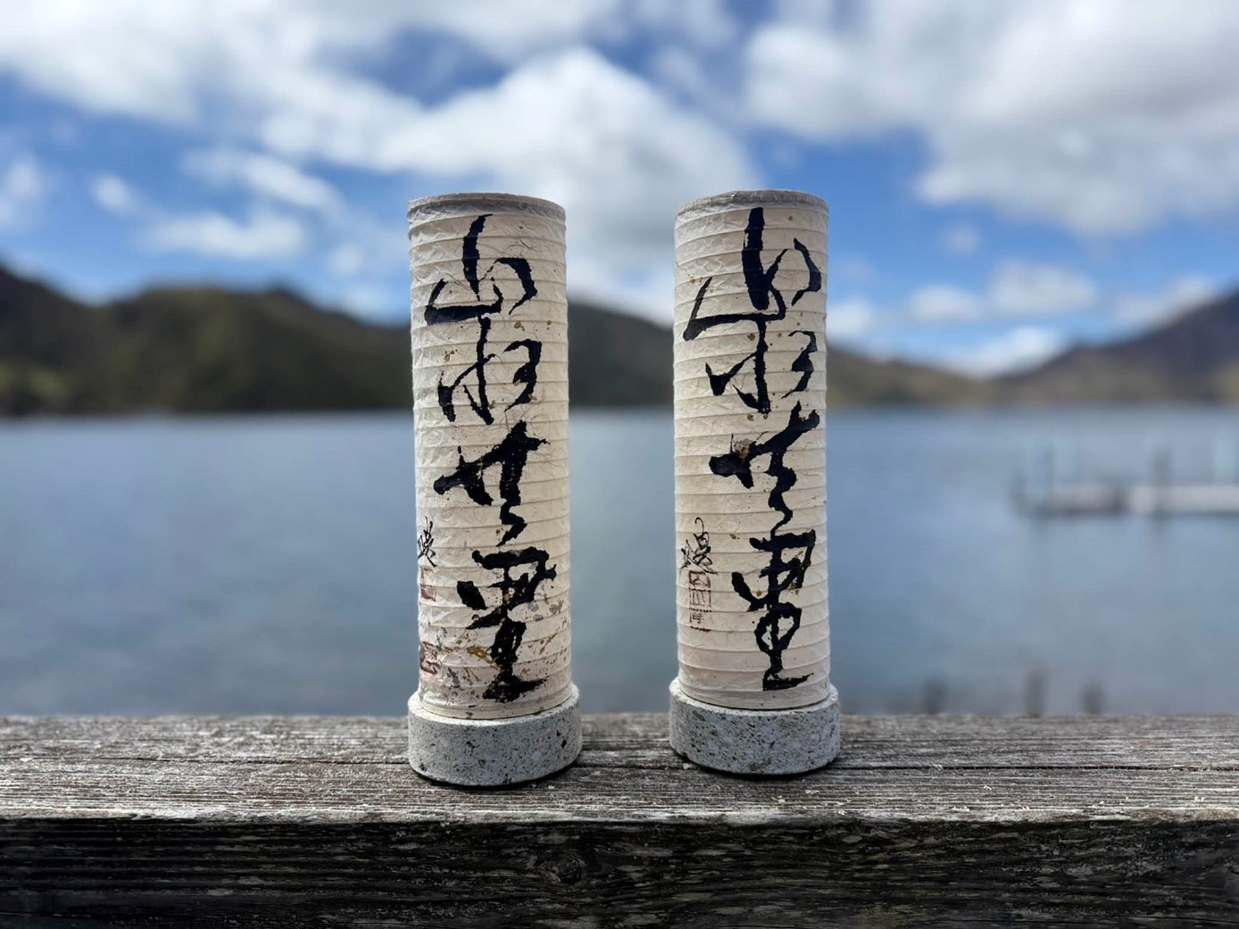 墨絵師・荒川颼氏とのコラボ提灯を初披露 『大谷石インテリア墨絵提灯』