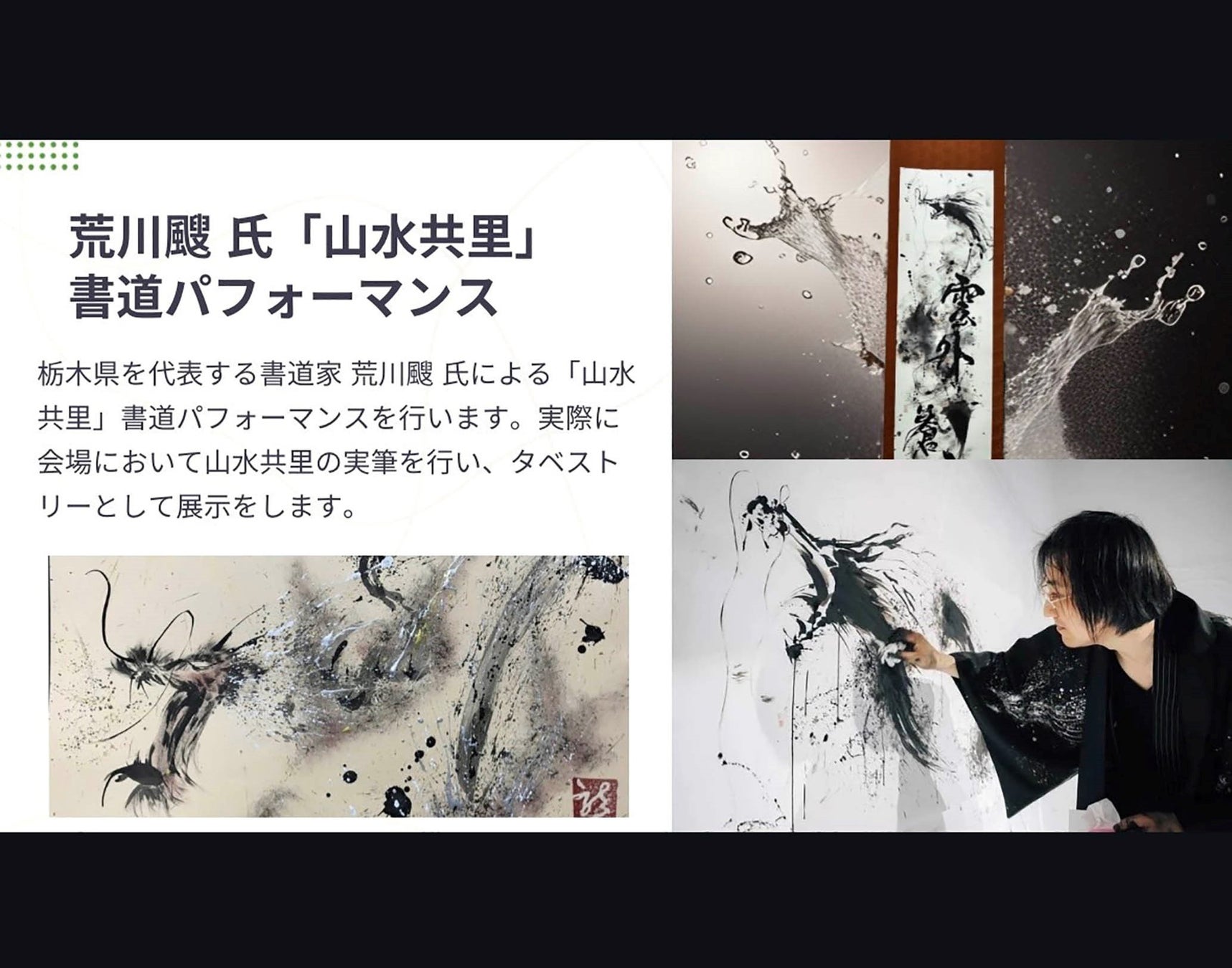 また、展示期間中(6月27日~29日)唯一無二の筆を使わない墨絵師・荒川颼氏の「『山水共里』 ライブ墨絵パフォーマンスを開催いたします。