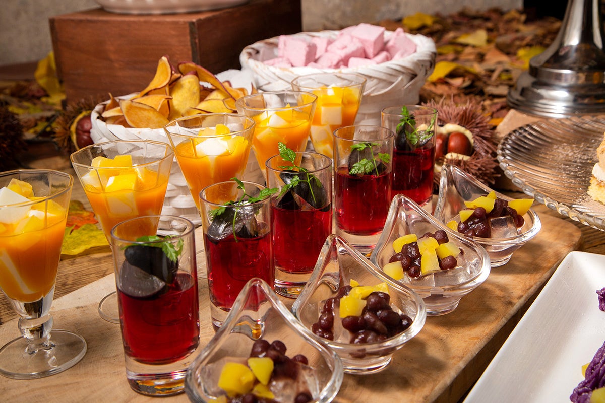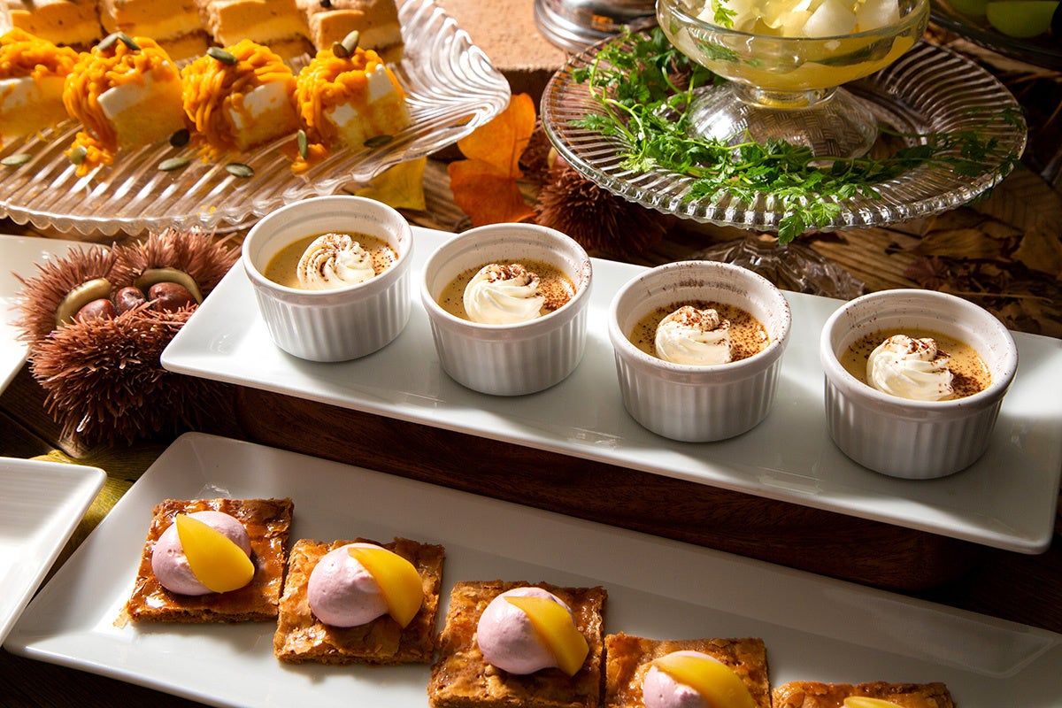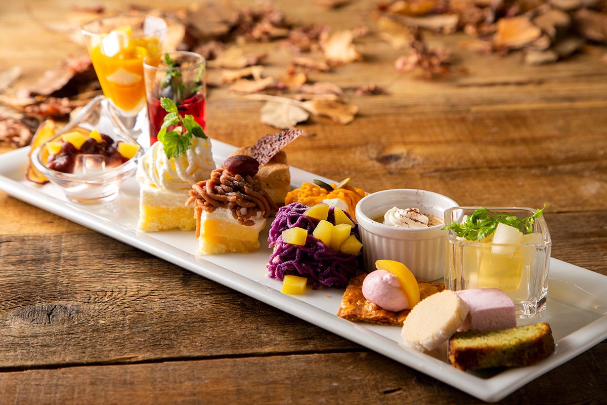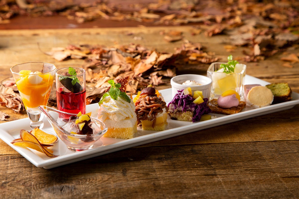 今美味しい食材を使用したデザートビュッフェ、秋はさつまいも、栗、フレッシュぶどうなど食材が盛りだくさんです!