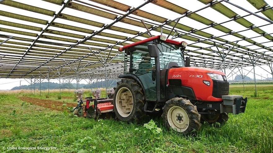 「自然をエネルギーに エネルギーを未来に」をキャッチフレーズに掲げる大学発ベンチャーの千葉エコ・エネルギーが、40年前に山を削って作られた開畑地区で10年以上も耕作放棄地となっていた場所を借りてソーラーシェアリングの発電所を設置。耕作放棄地の解消だけでなく、設備下の畑では地元農業者による有機栽培や、新規就農者の受け入れを進めることで、自然エネルギーと農業の両立による地域活性化のモデル実現を図る。