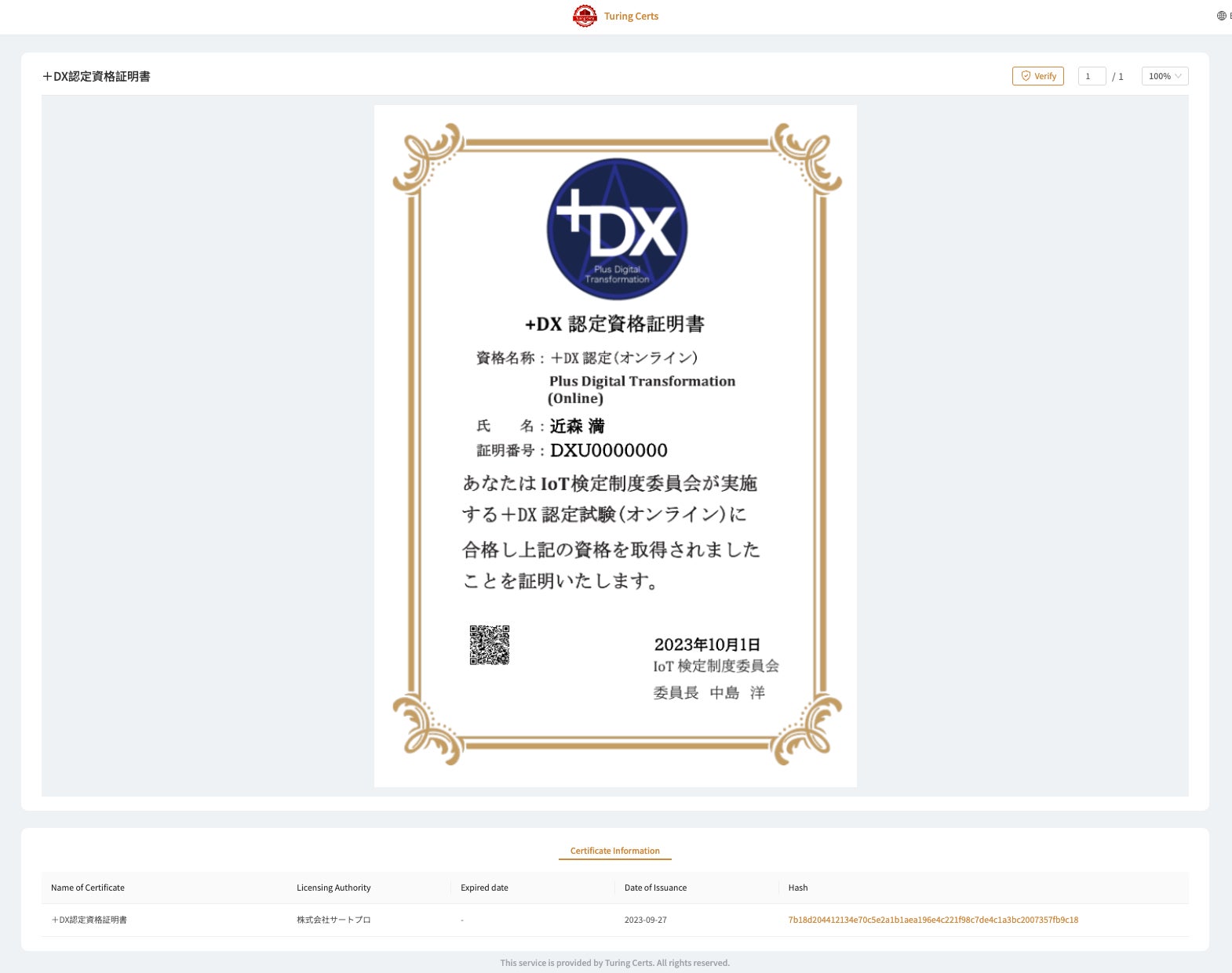 Turing社によるブロックチェーン証明書サービスの詳細につきましては下記をご参照ください(外部サイト:日本法人のTuring Japan株式会社)