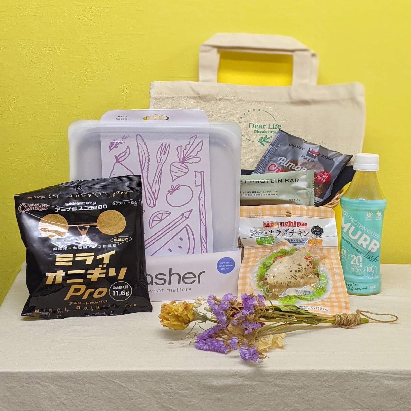 オープン2周年記念として、健康・トレーニングをテーマとした限定セットを数量限定で販売いたします。この夏の身体作りにぴったりなアイテムが「Dear Lifeオリジナルエコバック」に入った豪華7点セットです。(¥ 5,455(税込)相当)