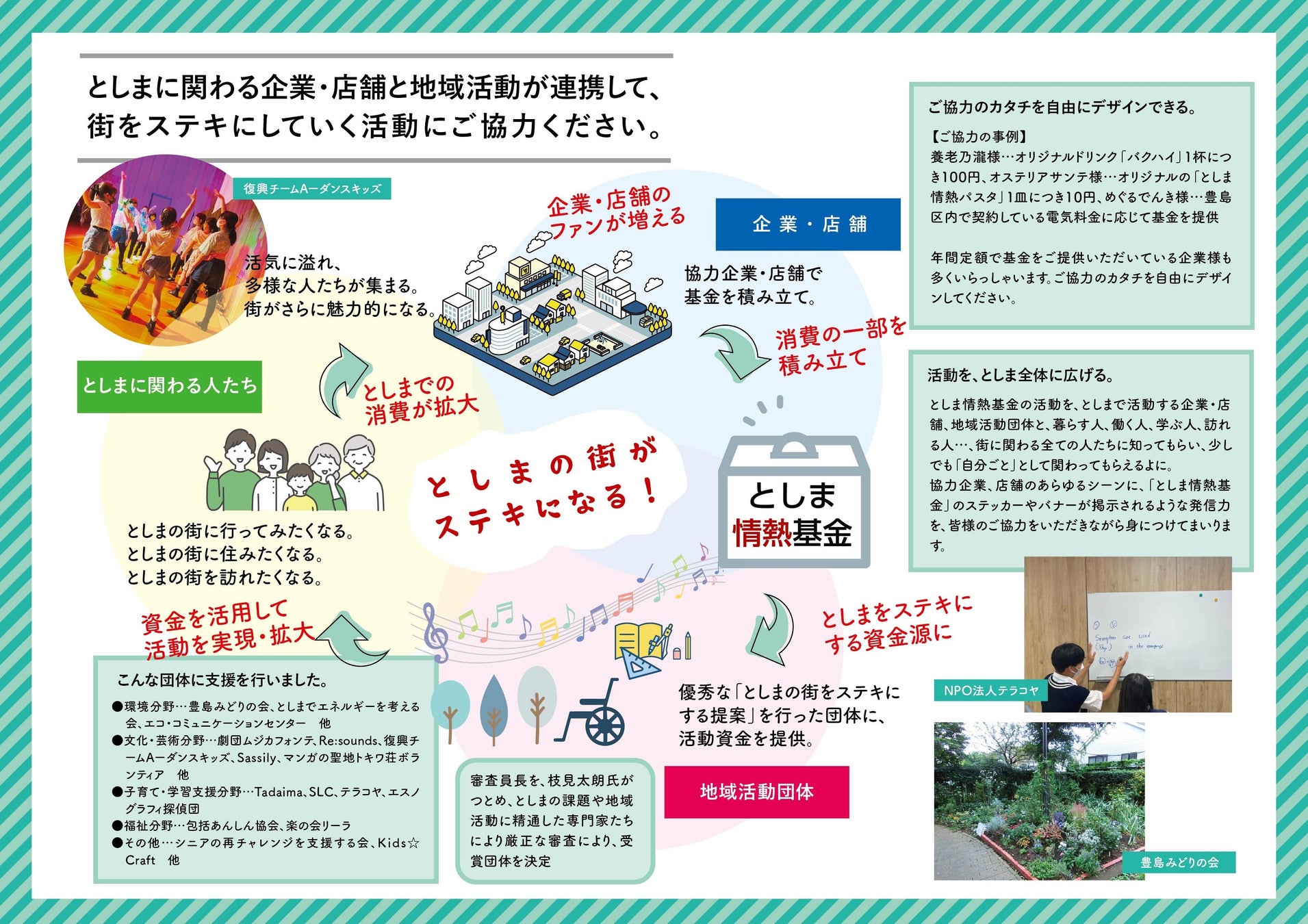 豊島区内約20社の民間企業や商店が基金を出し合って、地元の社会貢献活動団体、NPO法人などの活動を支える民間の取り組みです。