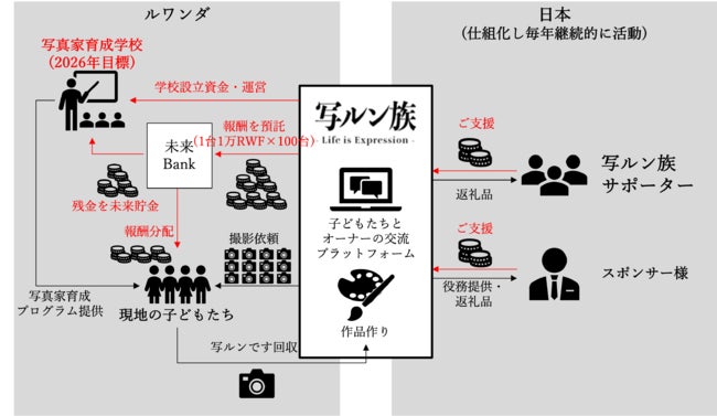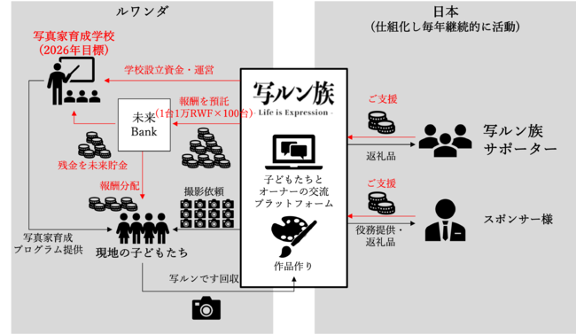 (4)撮影された写真をアーティストに題材として提供し、コラボ作品の制作を依頼。コラボ作品を展示・販売し、利益の50%をアーティストに、残りの50%を将来のアーティスト育成学校設立・運営費用に充当(2022年中の設立が目標)