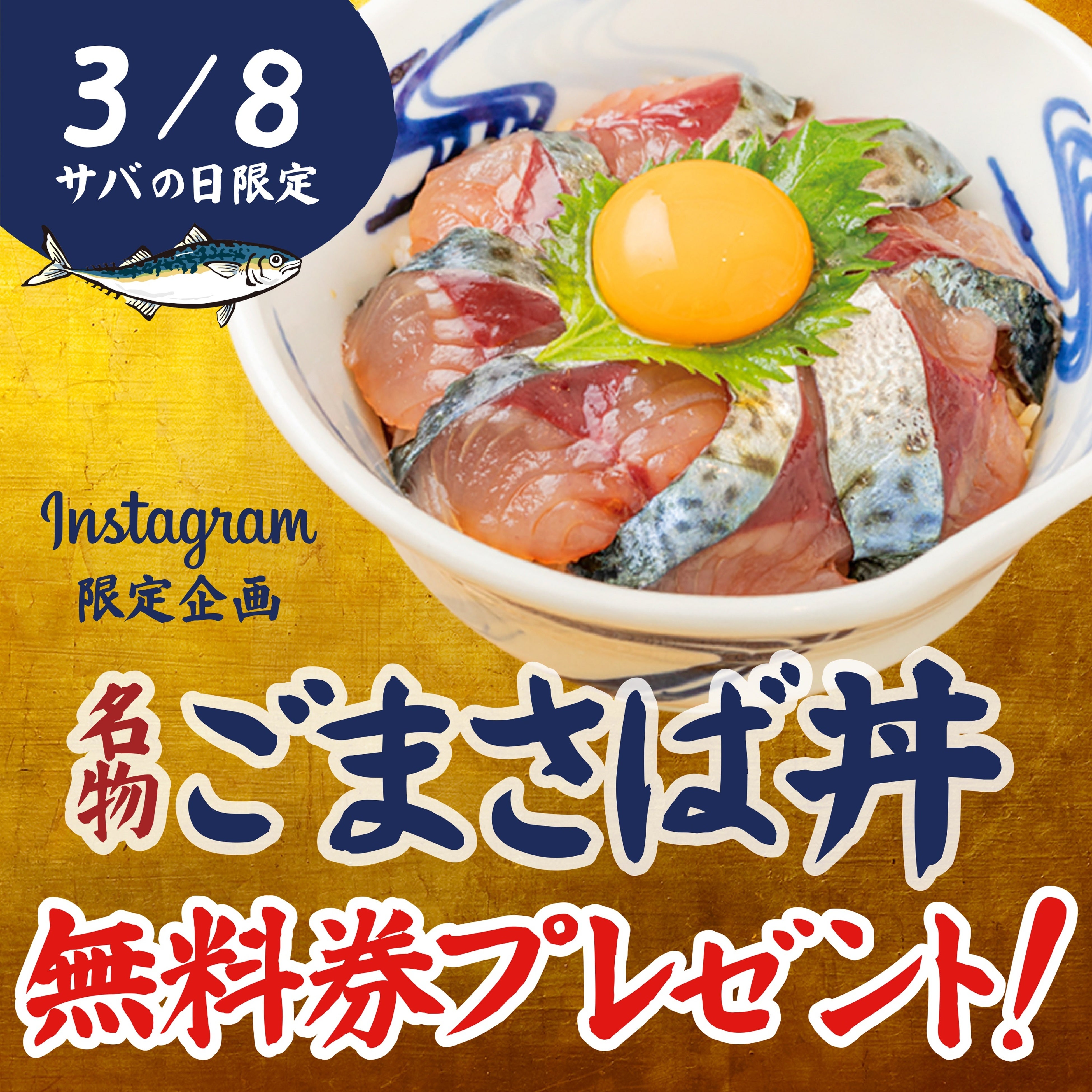 3/8【サバの日】限定!名物ごまさば丼1食無料券プレゼント!『いまがわ食堂』町田店・青葉台店・湘南台店の全3店舗にて1日限りのキャンペーンを実施