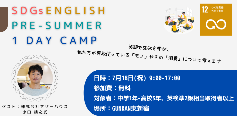 【SDGs English 中高生向け Pre-Summer 1 Day Campの概要】