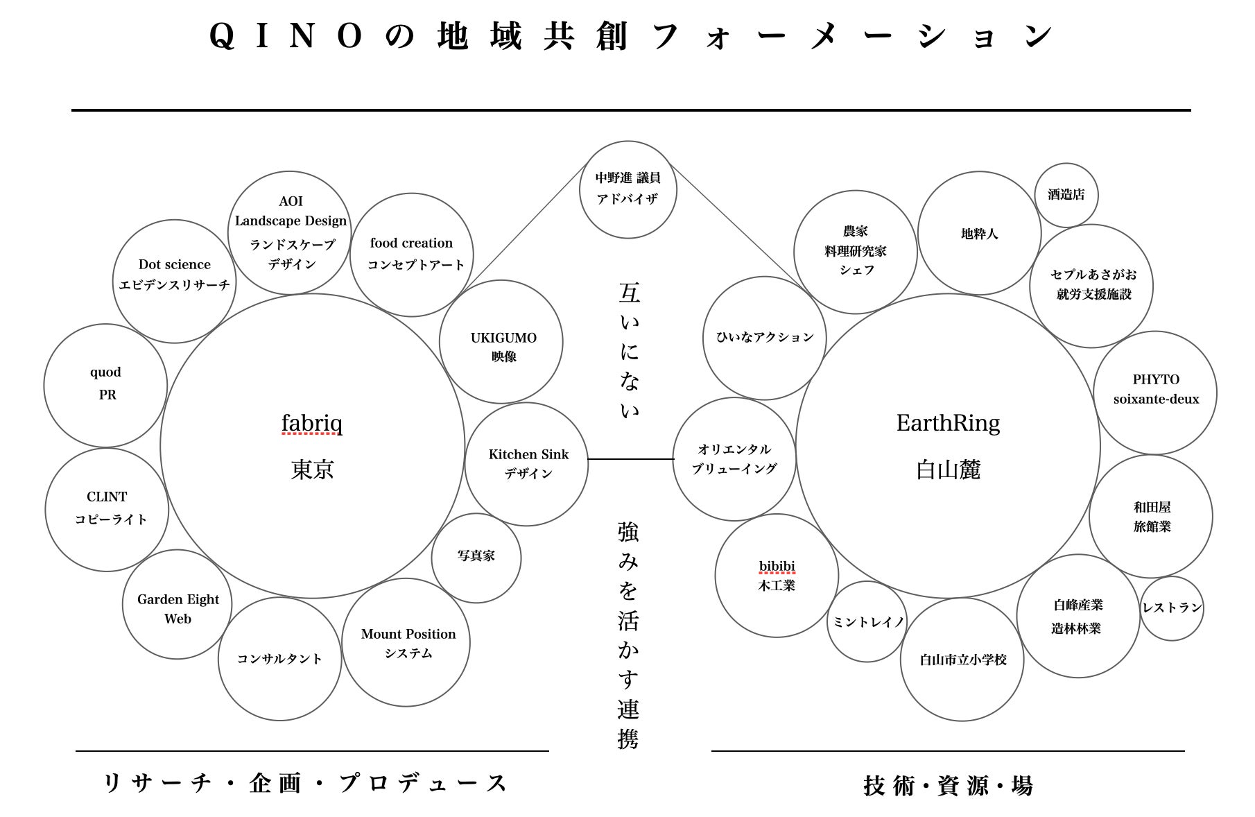 株式会社fabriq ( 東京都渋谷区、代表 高平晴誉 ) とEarthRing ( 石川県白山市、代表 大本健太郎 )は、“木を使い、山を育て、水を守る”というビジョンのもと地域共創プロジェクト「QINO(キノ)」を展開しています。この秋、新たな取り組みとして、白山麓の森で地域の食材・間伐材を使用した、フルコースを提供する「 QINO Restaurant(キノレストラン) 」を10月1日・2日の2日間で開催します。また、開催に先立ち8月10日よりクラウドファンディングをスタートします。