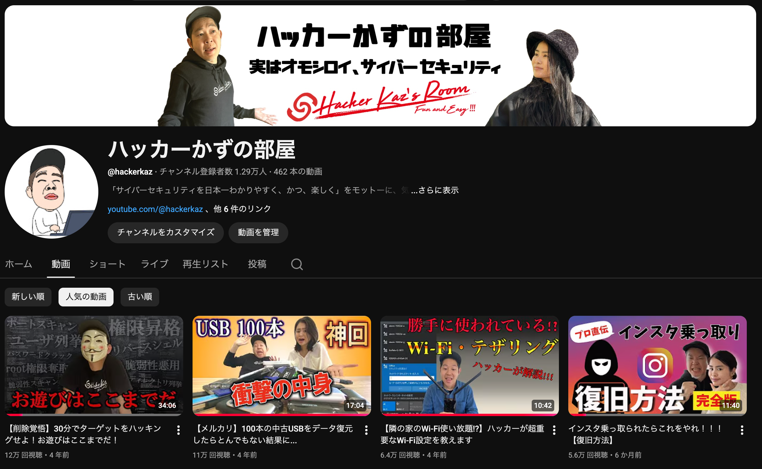 ・チャンネル: ハッカーかずの部屋(登録者数13,000人)