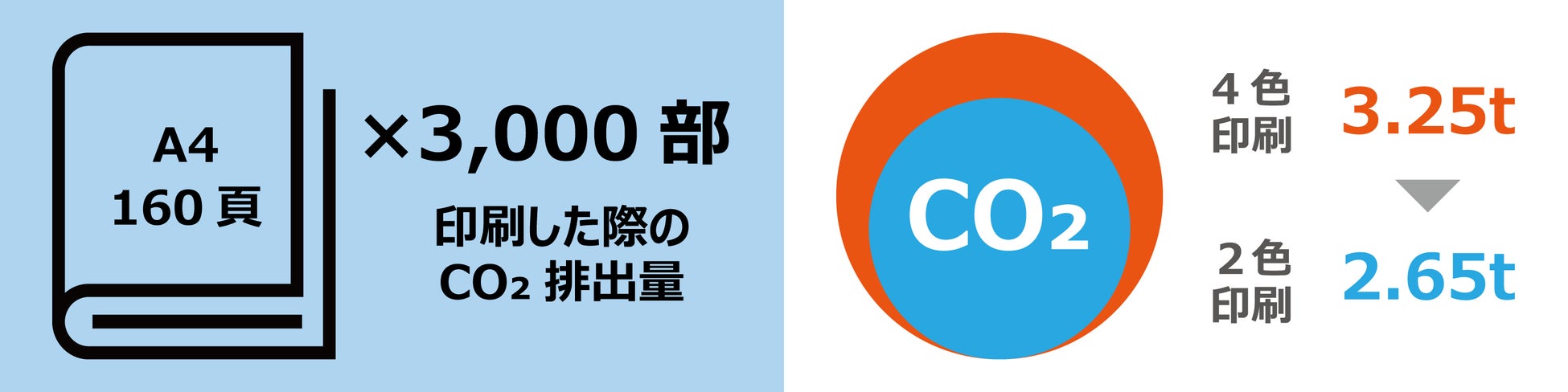 2色印刷はフルカラーの印刷よりも環境負荷が小さくなります。