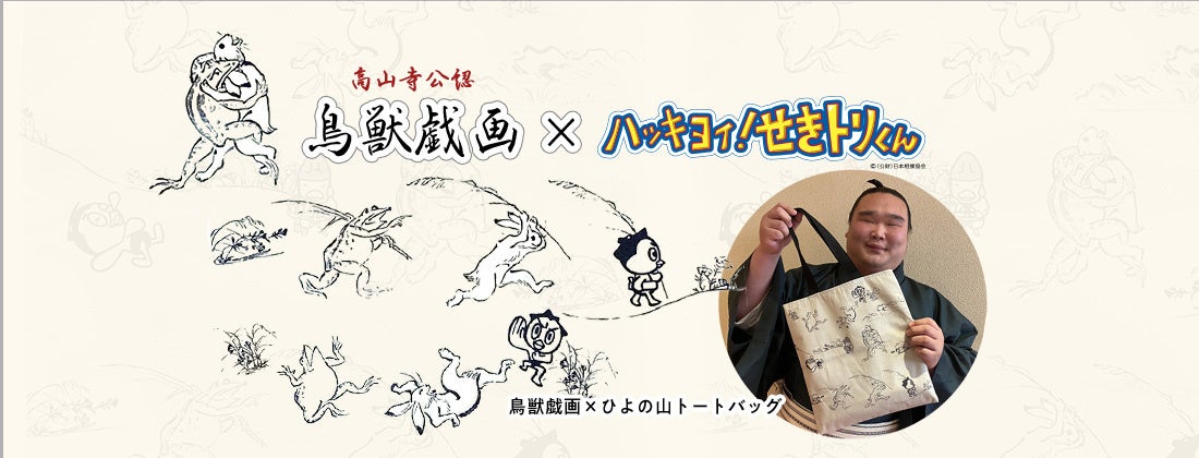 株式会社エルシオン(東京都港区麻布十番1-5-8-3F)は、世界遺産 栂尾山 高山寺(京都府右京区)と公益財団法人日本相撲協会と共に、高山寺が所蔵する国宝「鳥獣人物戯画」と日本相撲協会公式キャラクター「ハッキヨイ!せきトリくん」のコラボレーショントートバッグの販売を開始しました。