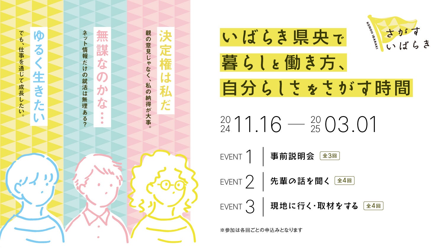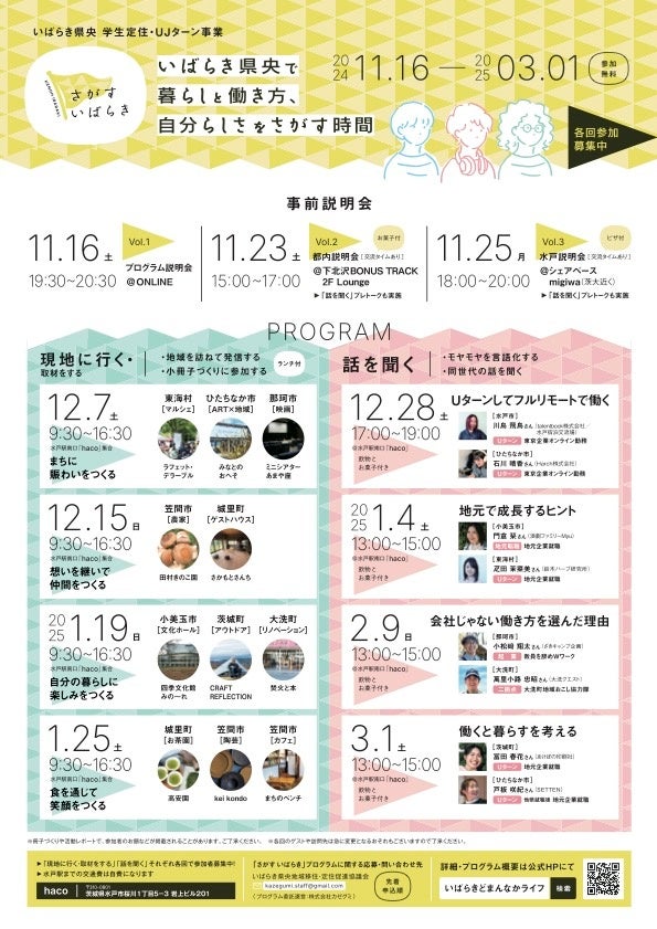 いばらき県央エリアで、学生対象の「さがす いばらき」プログラムの参加者募集開始。11/16の事前説明会から、計11回のプログラムを実施。