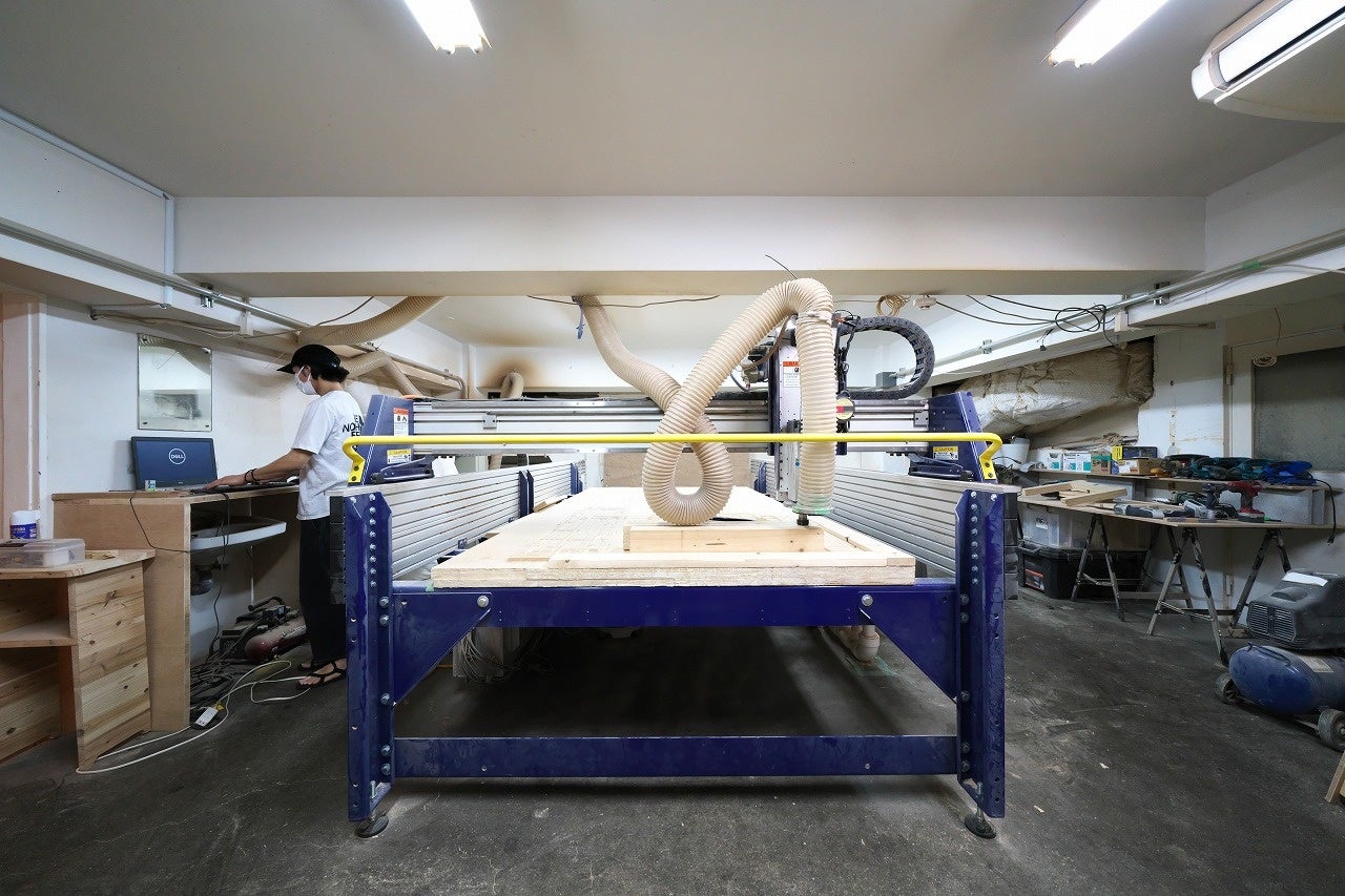 「プラモ家具 BARM」は、デジタル木工加工機「ショップボット」を駆使して、木材を積層させたことで生まれる有機的な曲面と、目を引く美しさを実現しました。さらに、高精度イメージング・レーザースキャナー「ライカBLK360」を使用しており、既存の壁面や天井面の凹凸にも柔軟に対応することが可能です。これにより、従来の家具にはない高度なカスタマイズが実現し、どのような空間にも馴染みます。