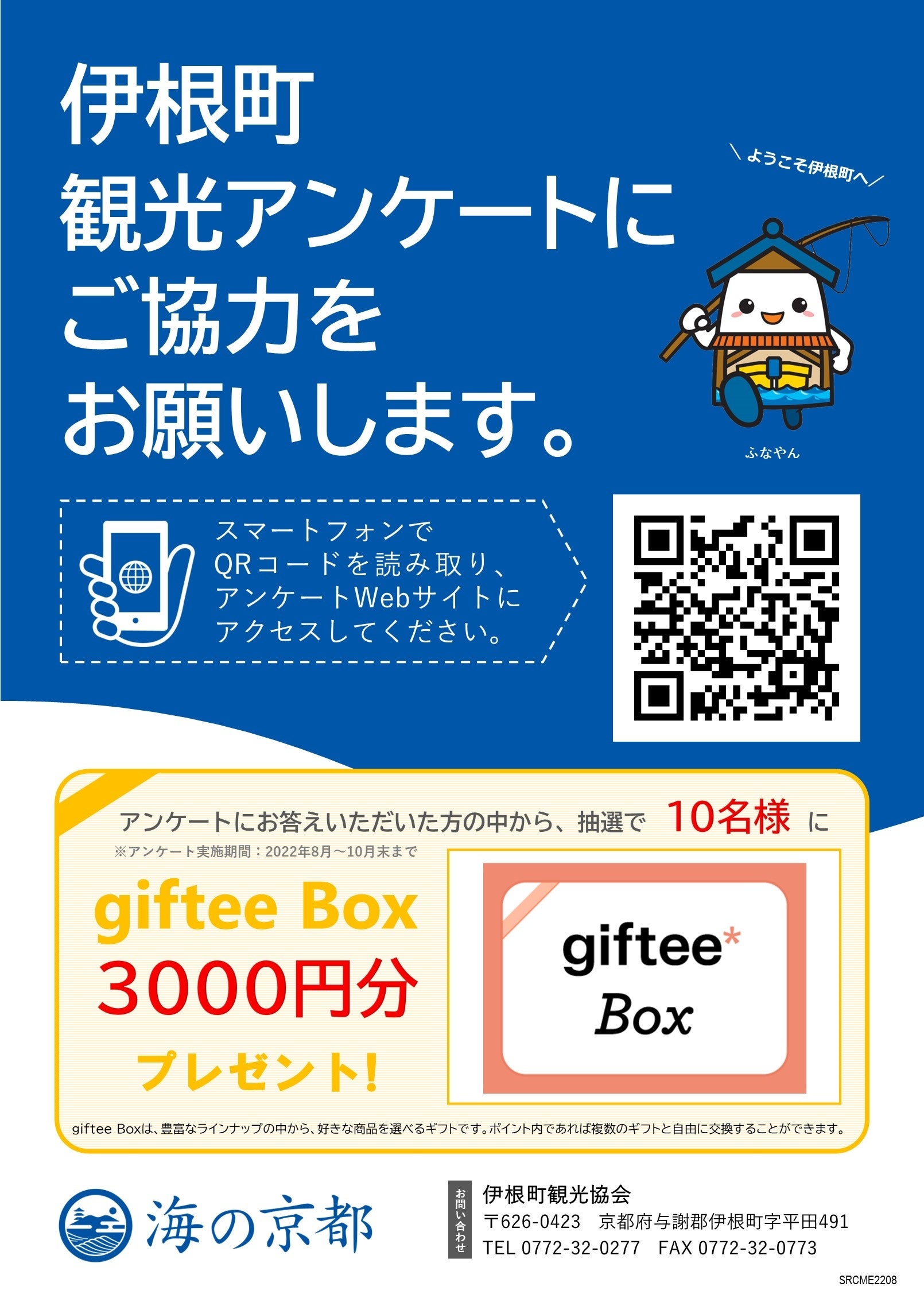 伊根町観光協会では、持続可能な観光地域づくりを推進するため、この度、改めて伊根町への来訪者を対象とした動向調査を実施します。11か所の調査地点を設定し、観光拠点の集客施設や宿泊施設を対象とした留め置きアンケートに対し、ウェブ上で回答を求めるものです。伊根町への来訪者から訪問動機や趣向等を把握することで、地域と親和性の高いロイヤルカスタマー像を明確化し、今後の施策やプロモーション等に反映して参ります。地域と来訪者との良好な関係を継続させることで、双方への負担や不満を軽減し、来訪者のリピーター化、リピーターのアンバサダー化を目指します。