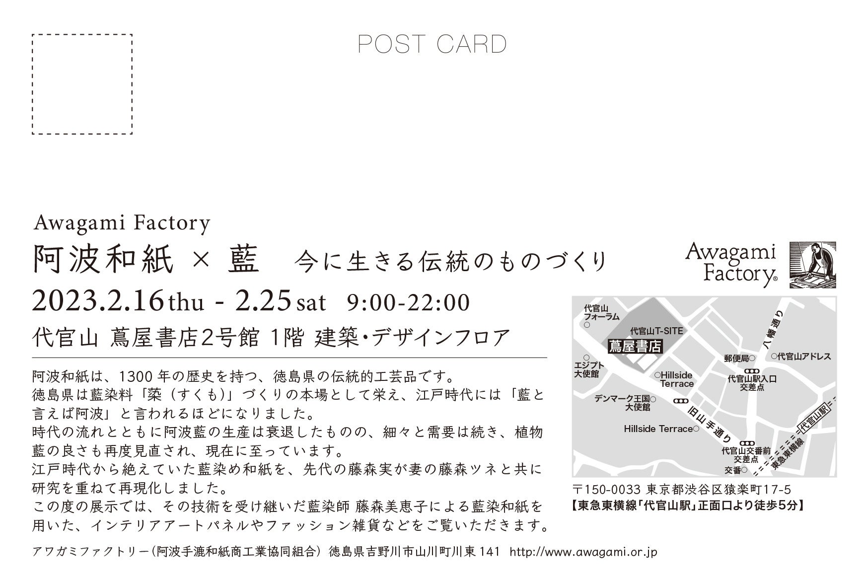 1300年の歴史を持つ阿波和紙を製造・販売するアワガミファクトリー(徳島県吉野川市)は、藍染師 藤森美恵子が染めた阿波藍染め和紙を用いたアートパネル、トートバッグ、財布、名刺入れなどのアイテム約40点を発表する展示会を、代官山 蔦屋書店にて2023年2月16日(木)より開催しています。