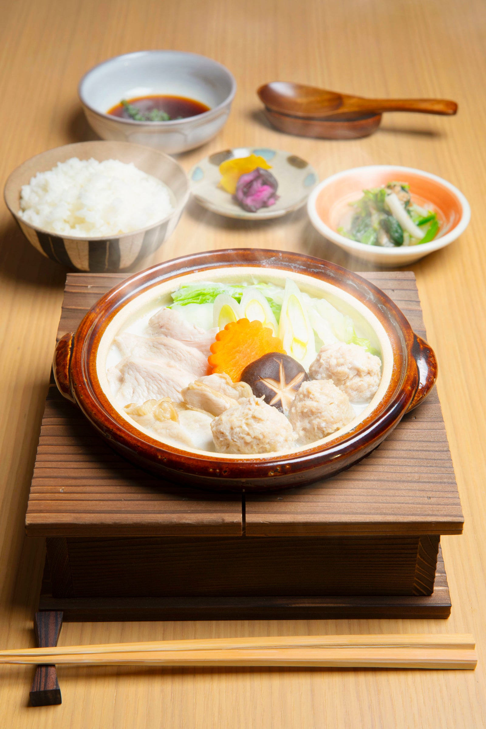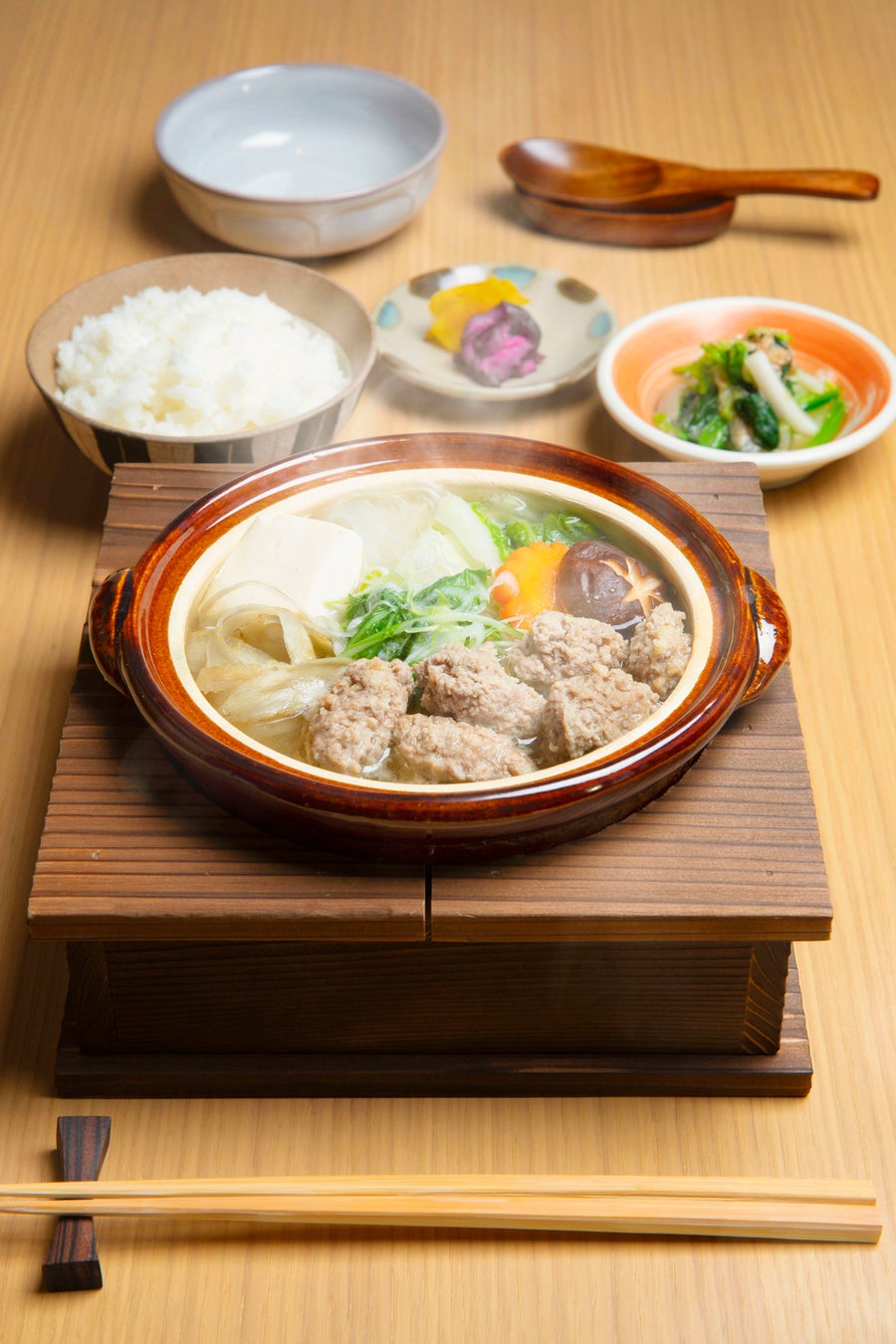 鴨つくね鍋、季節小鉢、ご飯、香の物