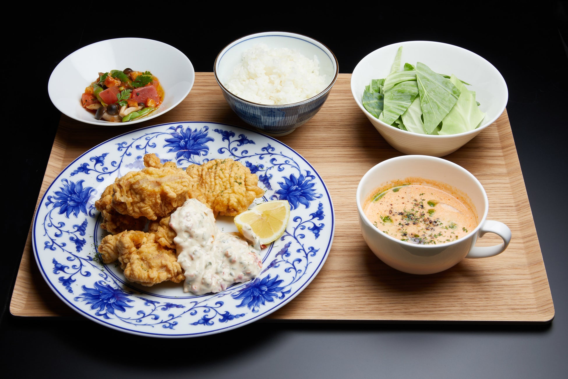 鶏唐揚げ熊本黒麹漬け ドライトマト&バジルのタルタルセット タパス、スープ、パン又はライス 1,705円