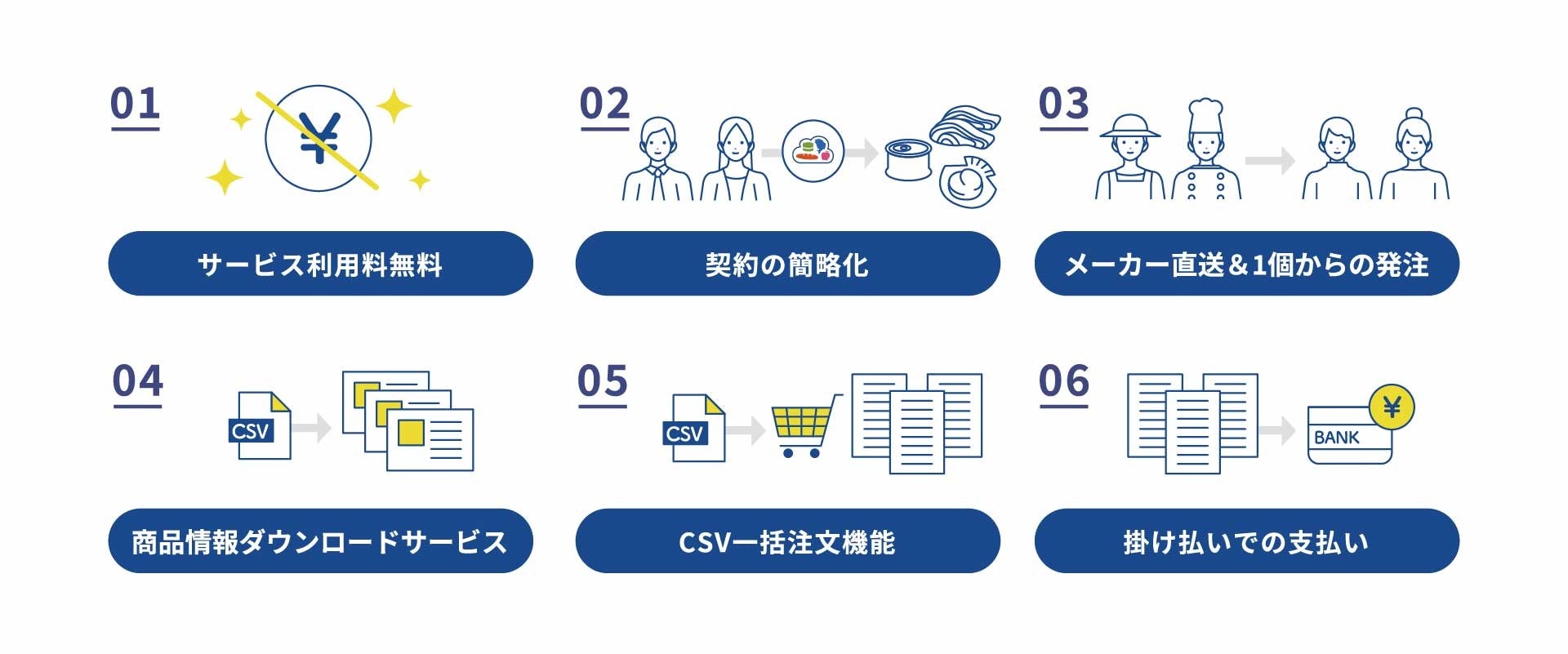 そのつながりから様々なサプライヤーより商品を出品いただき、他では取り扱っていない商品、ネットでは販売されていない商品、業務用商品に至るまで幅広い食品商材を現在5,000商品以上取り扱っています。