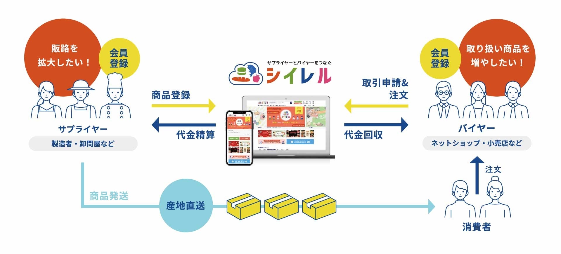 当社の無料会員制仕入れサービスである「シイレル」は、新商品の取り扱いを増やしたい企業・店舗(バイヤー)と商品の拡販を希望する製造業者・企業(サプライヤー)をつなぐ仕入れ・卸サービスです。