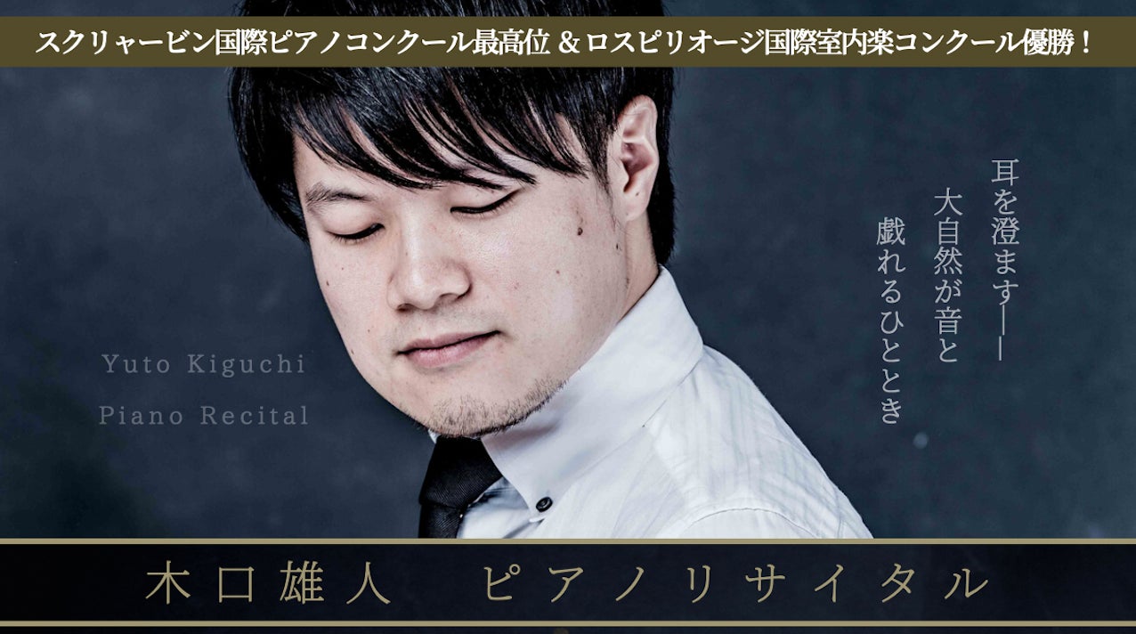 ※新型コロナウイルスの影響によるやむを得ない事情により、8/5に予定されていた「木口雄人 ピアノリサイタル 関西公演」は、公演中止となりました。お楽しみにしていただいた皆様には心よりお詫び申し上げます。