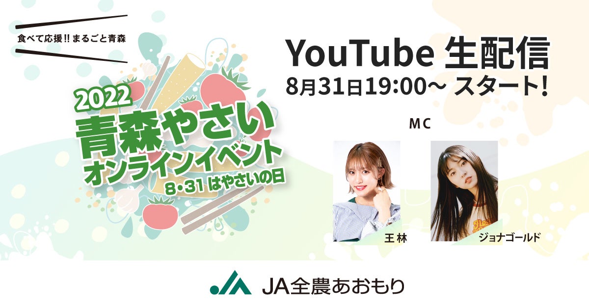 JA全農あおもりは、8月31日の「やさいの日」を記念し、青森県産やさいを全国のみなさまに楽しみながらもみなさまの生活に役立つ「やさい情報」をお届けする、【青森やさいオンラインイベント】を無料配信します。