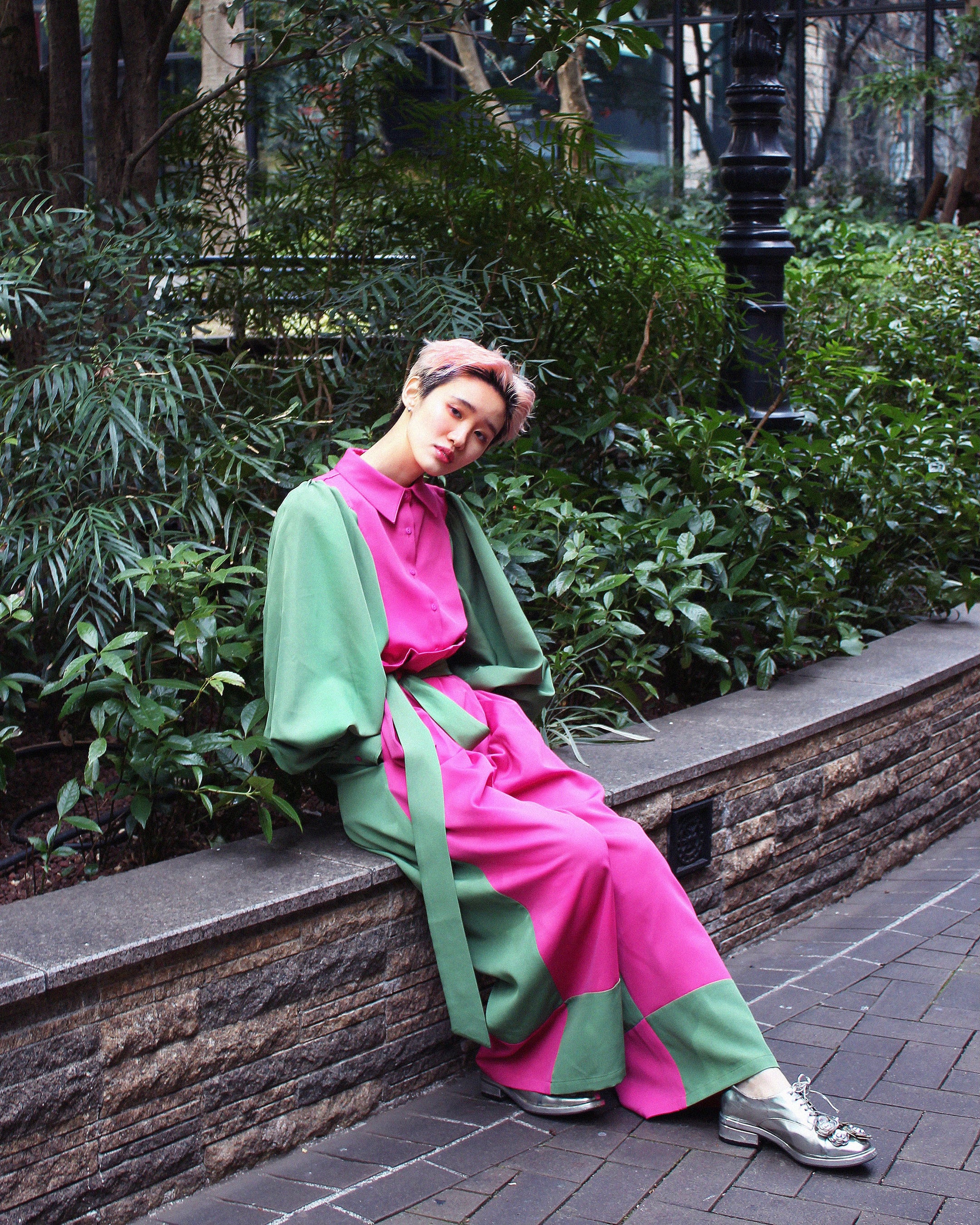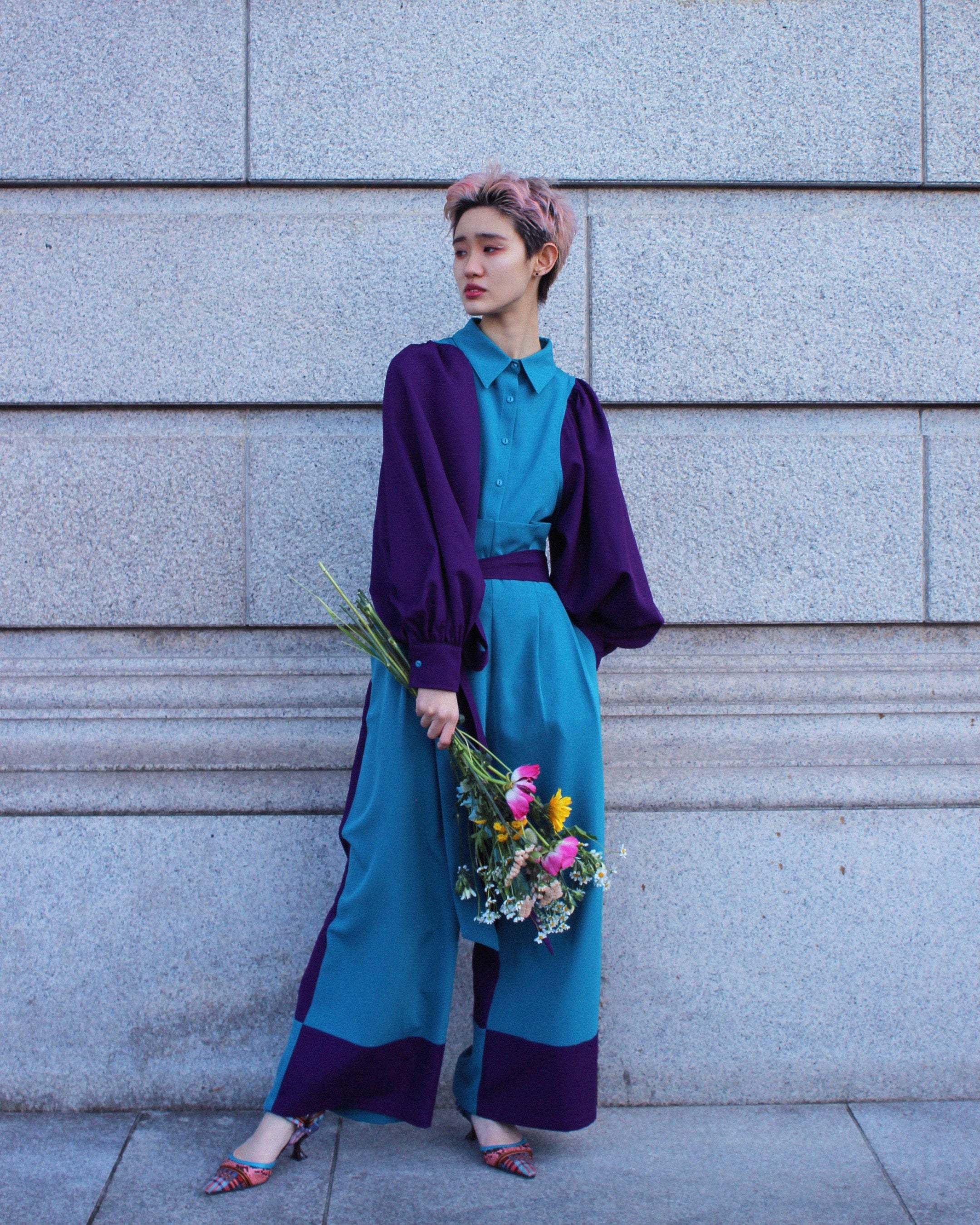 先行販売の2型は、大胆なカラーリングがScǎi tokyoらしいブラウスとワイドパンツ。