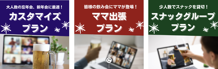 ■お客様のご要望に応じて選べる3つの「忘年会・新年会・ママ出張プラン」とは