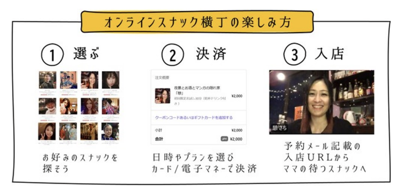 緊急事態宣言が解除された10月以降は、オンラインスナック横丁をきっかけに常連となったお客様がママを訪ねて実店舗を訪れたという嬉しい声も届いております。今後はオンラインスナックに加え、スナック店舗という本来の拠点、双方の架け橋としてスナック文化を幅広く支援してまいります。