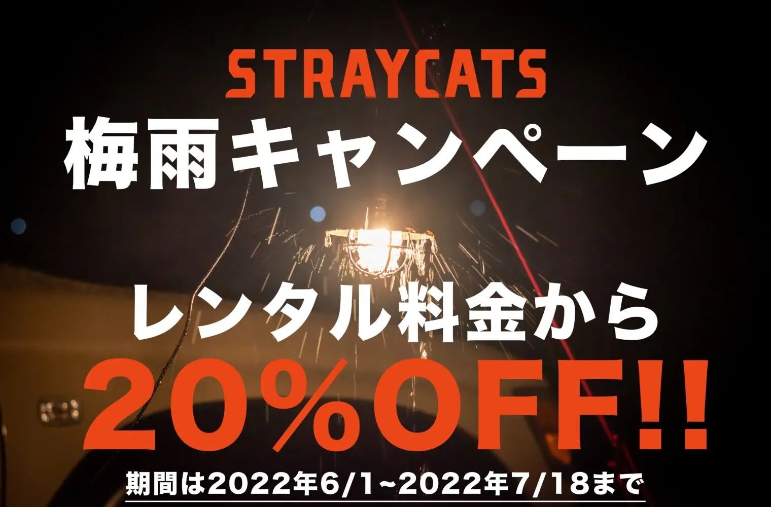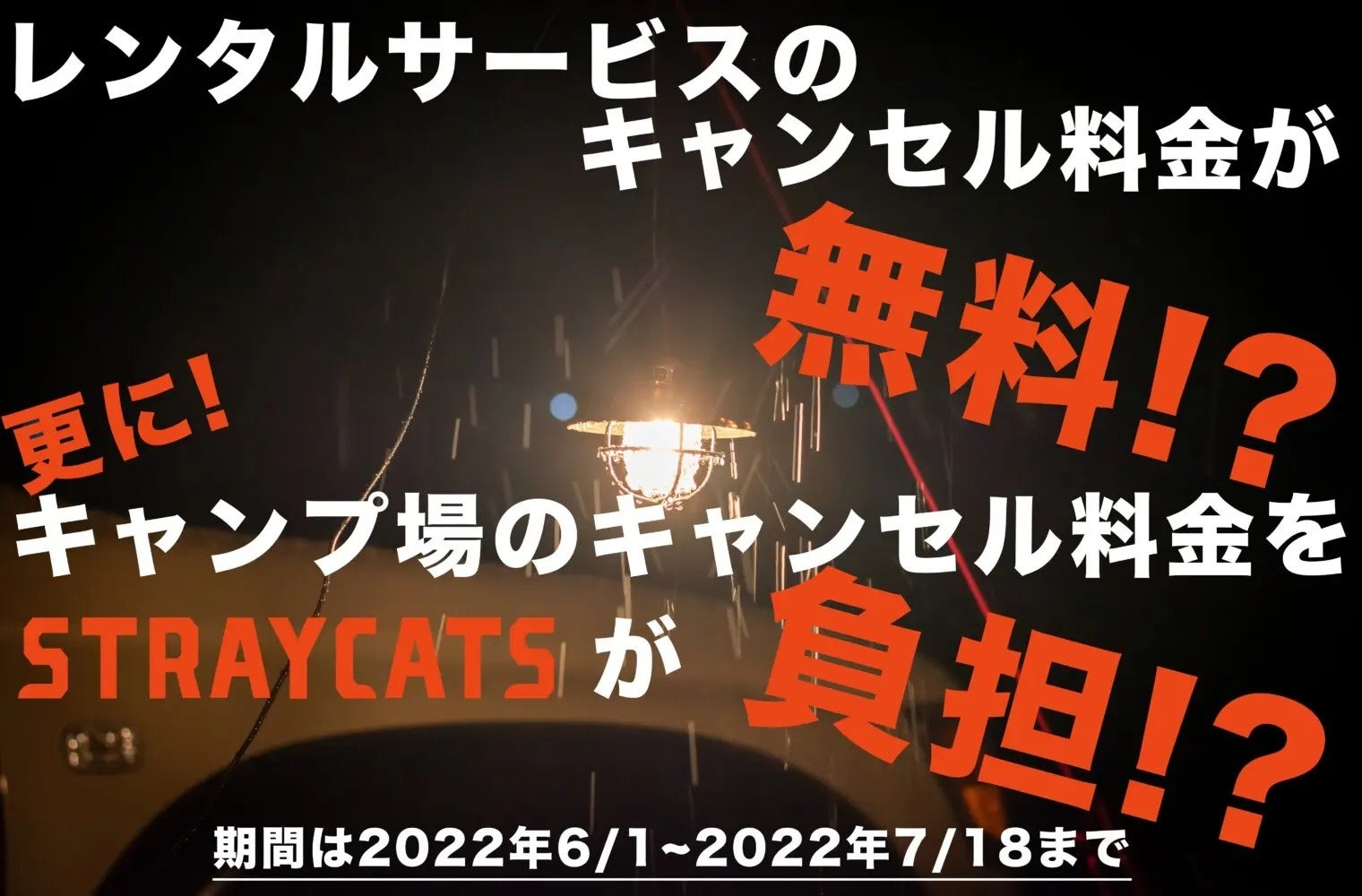 有限会社ツノダ製作所(本社:神奈川県横浜市/代表取締役 角田鷹夫)はキャンプ専用レンタカーサービス『STRAYCATS(ストレイキャッツ)』の利用についてキャンセル料を無料にすると共に、行き先キャンプ場のキャンセル料も負担する期間限定の特別キャンペーンを展開中です。雨が多い梅雨時期のご予約は急なキャンセルが発生しがち、そんな中でも柔軟にスケジュールの変更が可能となっております。
