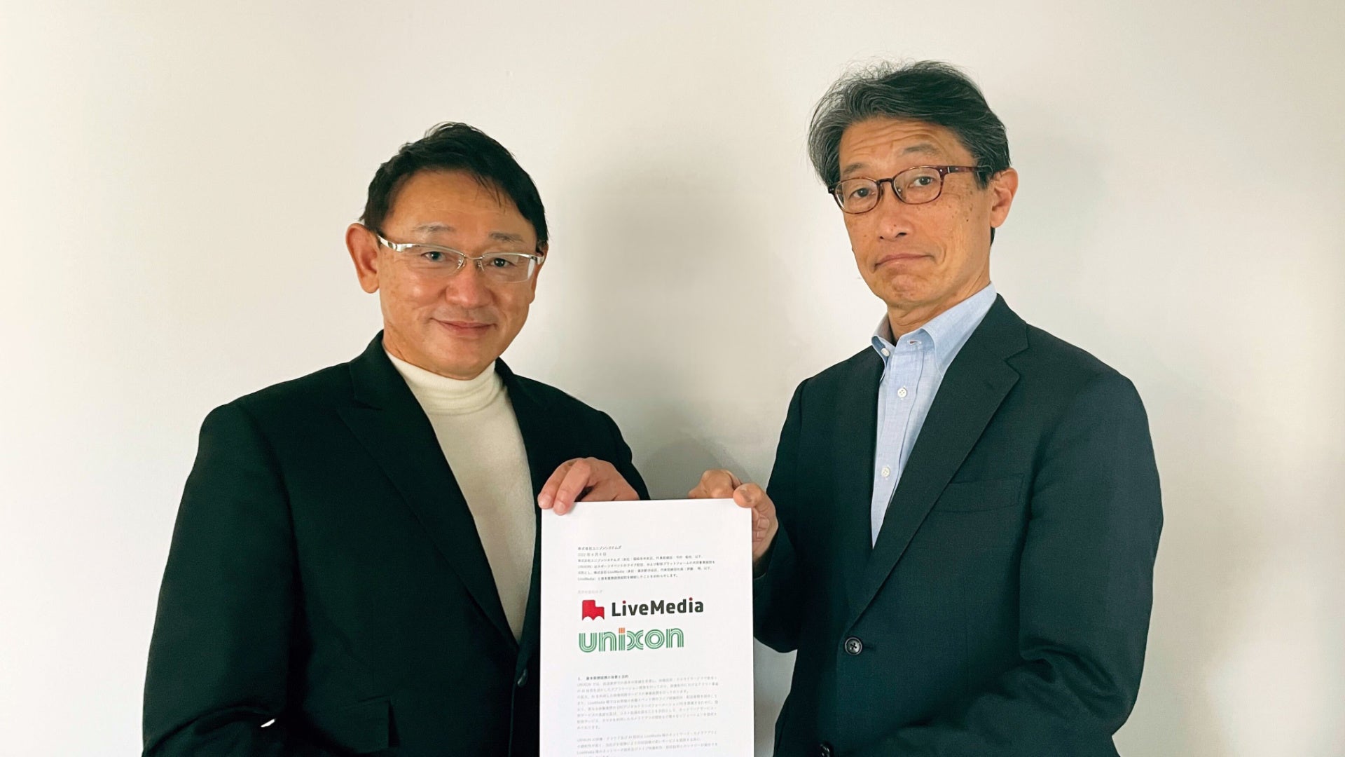 株式会社LiveMedia(本社:東京都渋谷区、代表取締役社長:伊藤 明、以下、LiveMedia)は映像制作・中継サービスのクラウド事業の拡大、AIを利用した映像処理サービスを目的とし、株式会社ユニゾンシステムズ(本社:福岡市中央区、代表取締役:今村 勉也、以下、UNIXON)と資本業務提携契約を締結したことをお知らせします。
