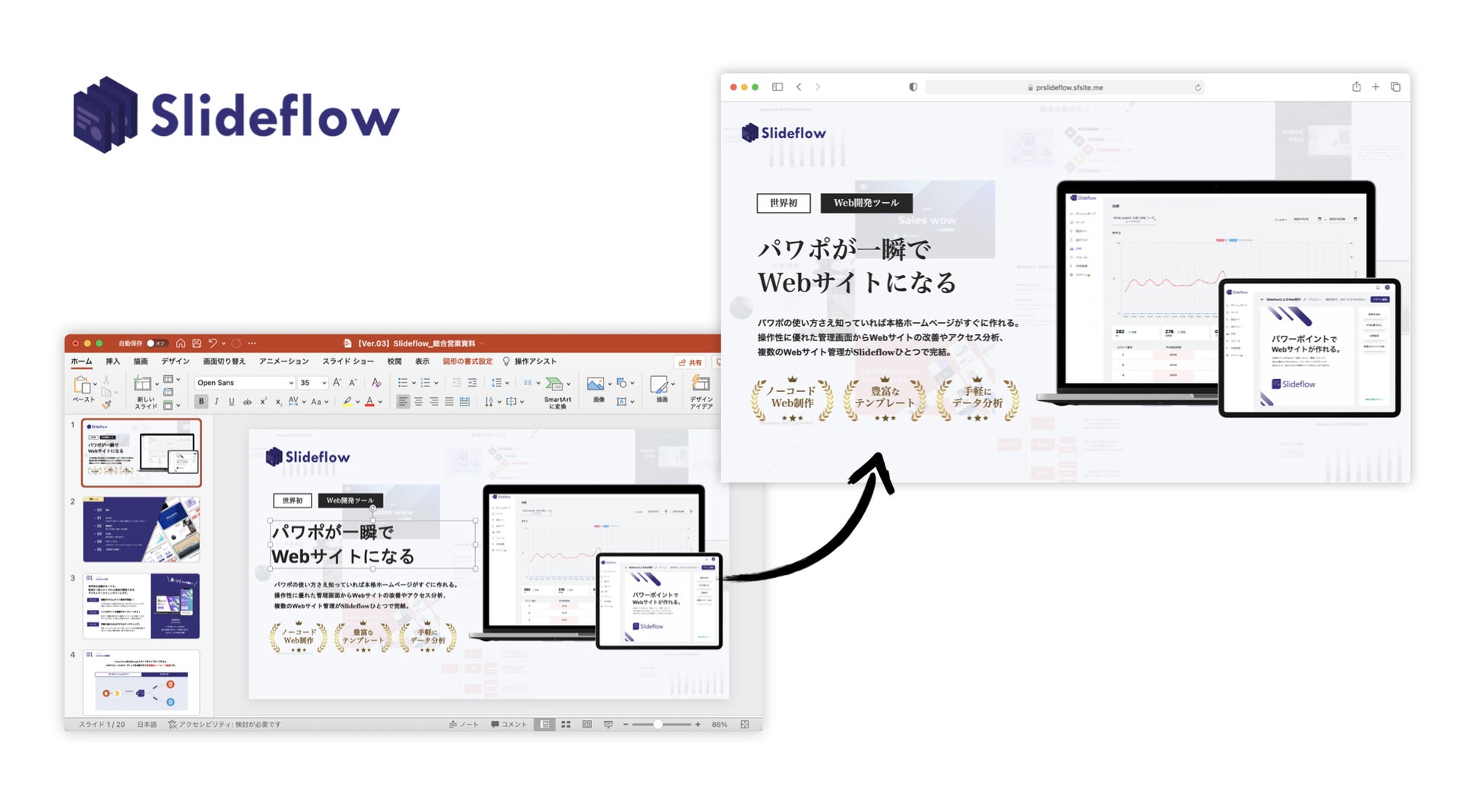 世界初※ パワポを30秒でWEBサイトにする「Slideflow(スライドフロー)」3/18 からSaaSサービス提供開始