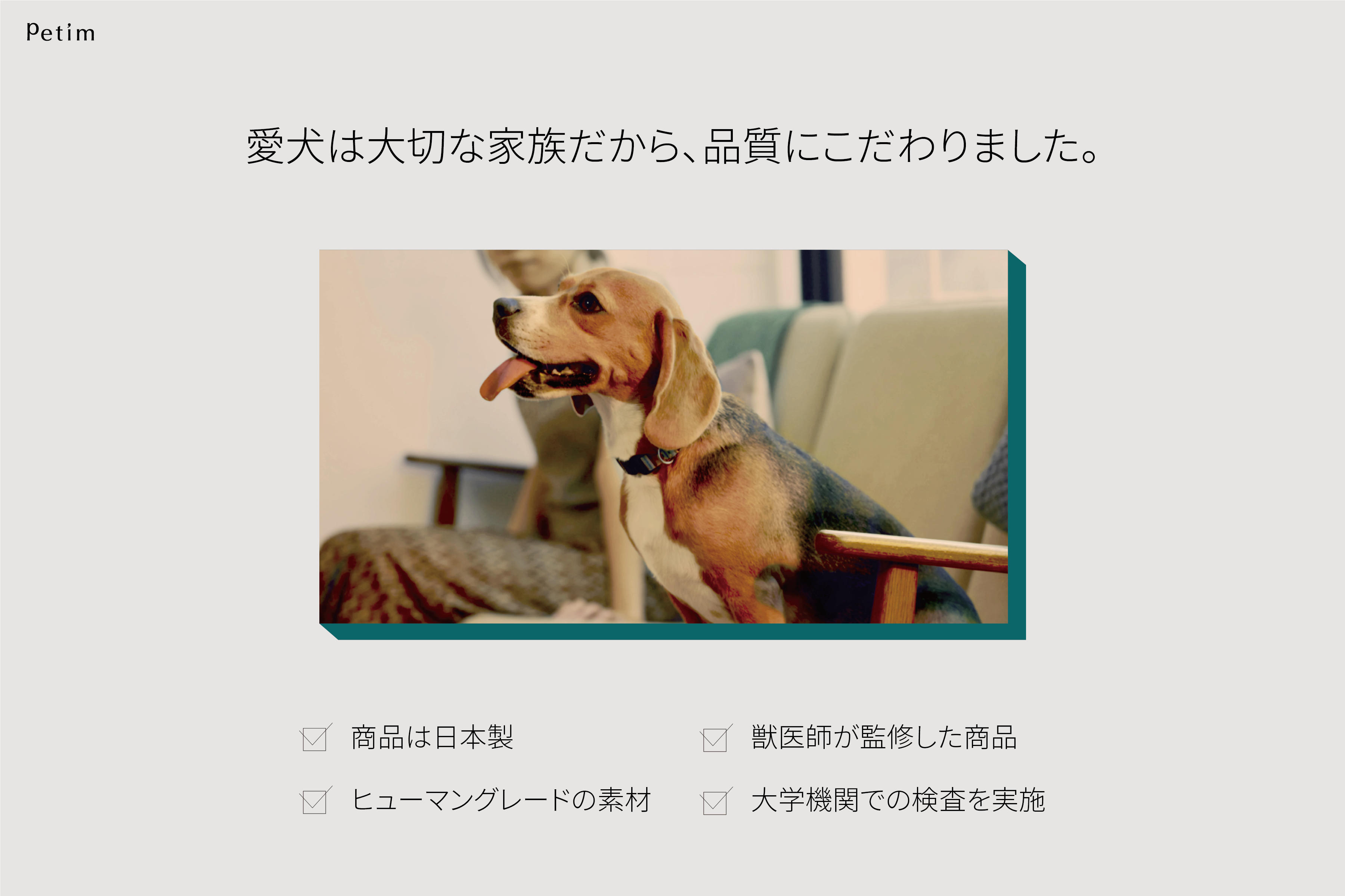 愛犬は大切な家族だから、Petimは品質にもこだわりました。
