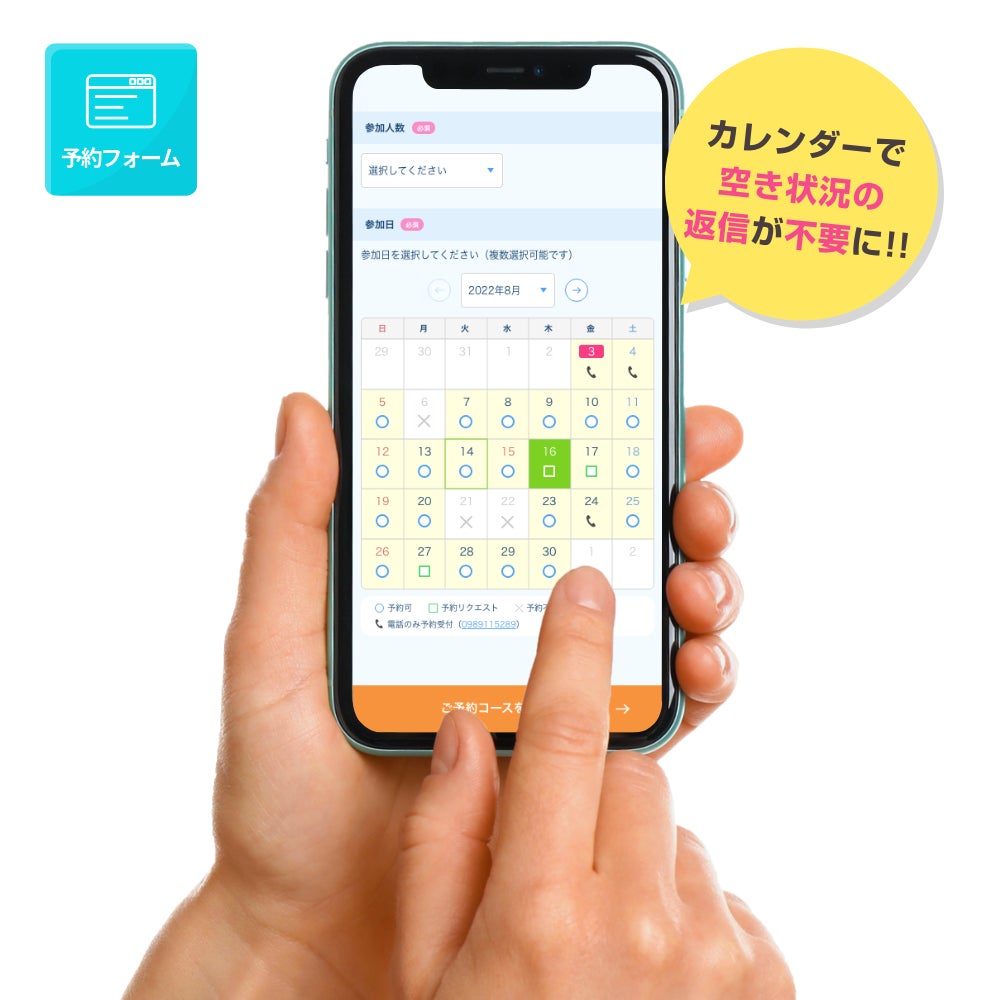 ダイビングショップ特有のメニューに対応したレンタル表示や、質問項目の選択が可能。さらに、空き状況がわかるカレンダー付きなので、お客様のお問い合わせの手間も減らし予約率が向上します。