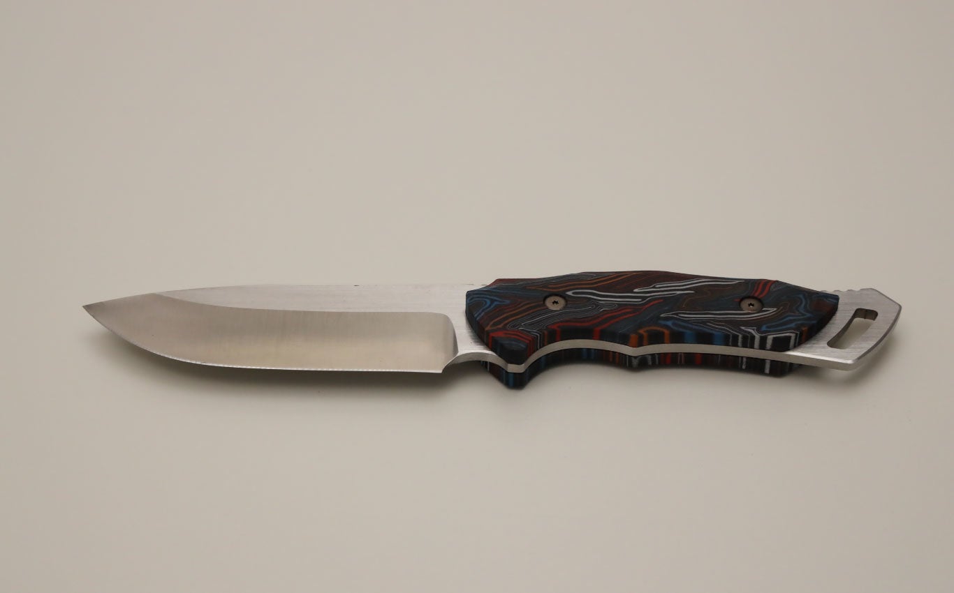 ・凌駕はデザインで差別化を図るためにハンドル材にダマスカス G10 を採用。