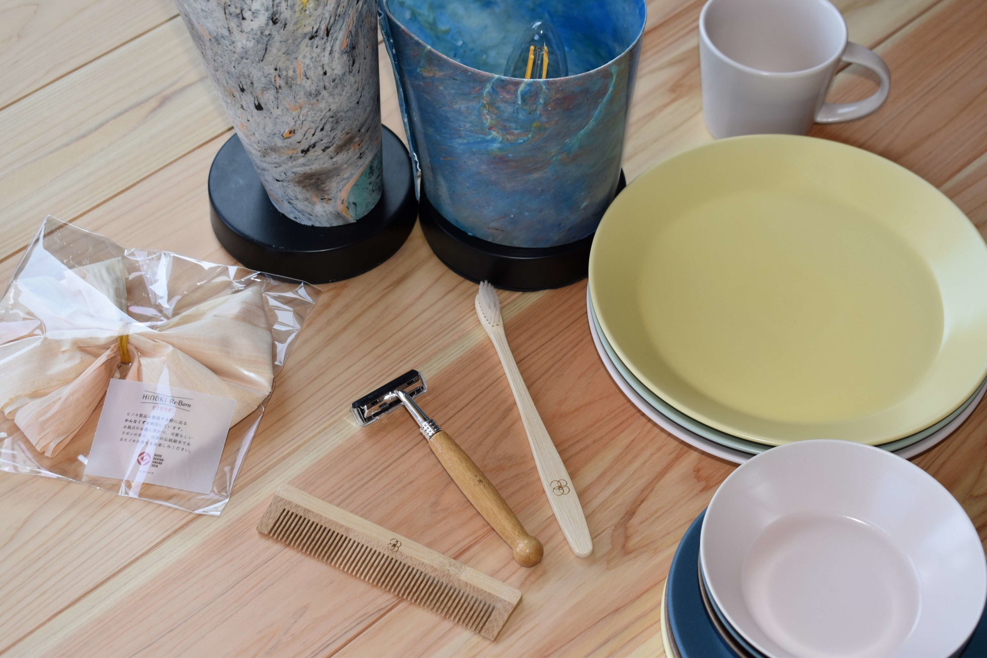 季さらOnenessは低環境負荷を強く意識しており、プラスチック製品削減に留まらず、アメニティは竹製品、グリーンダウン、海洋プラスチックをリサイクルしたREMAREのインテリアライト、食器には渇性資源を守るため再生陶器を使用しています。