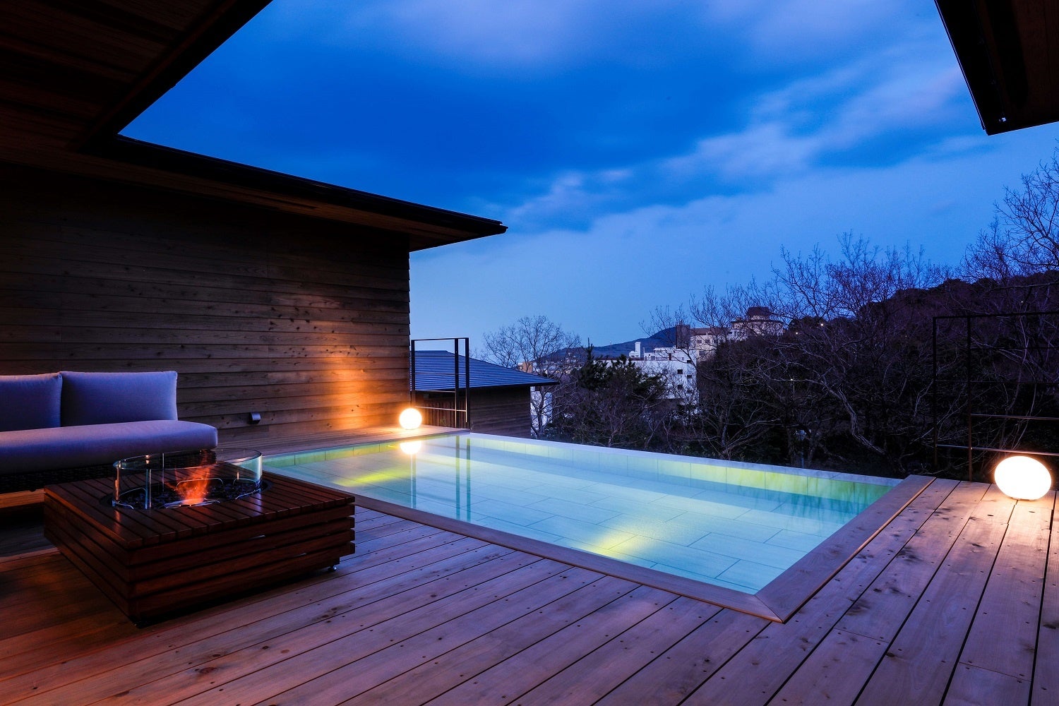 客室、スパどちらにも「社宮司温泉」を汲み入れています。客室の露天風呂は24時間利用可能です。スパは予約制で完全貸切(70分)となっています。社宮司温泉は清少納言が枕草子で「七栗の湯」として著述した温泉です。アルカリ性泉質で「美人の湯」と言われています。
