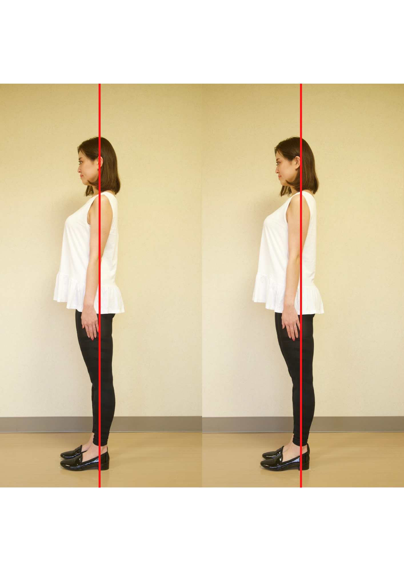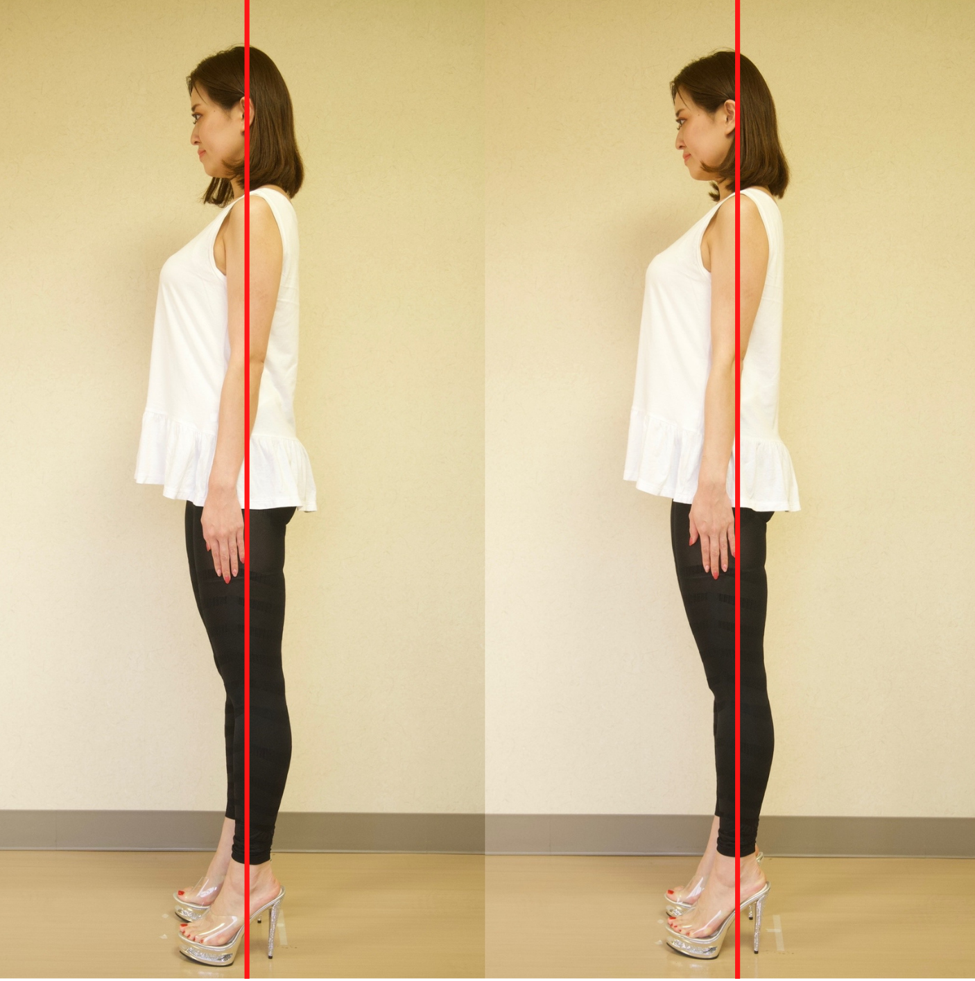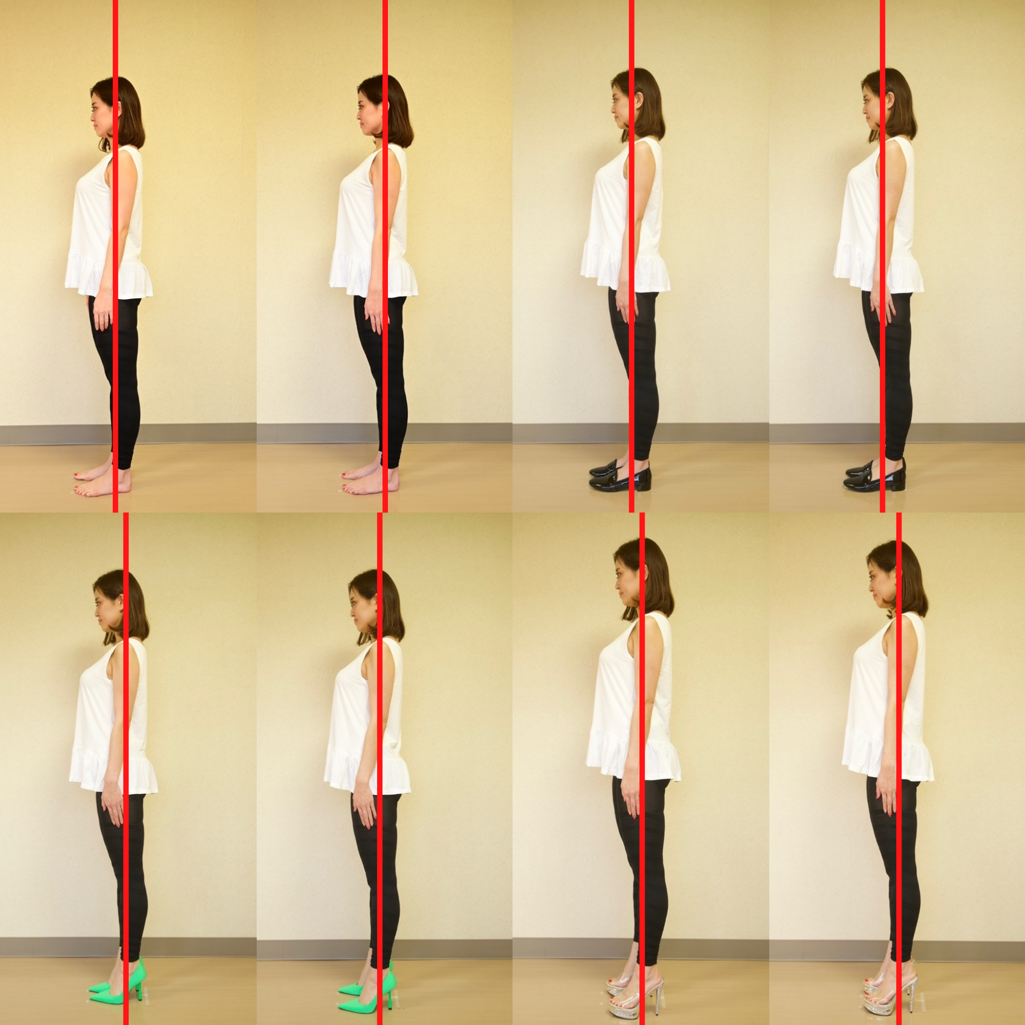 重心が足の中央に乗ることで踵の高低差関係なく姿勢を保つことができます。