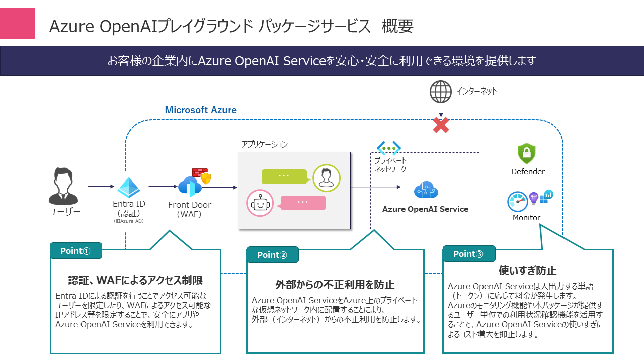 ・お客様の企業内に、Azure OpenAI Serviceを安心・安全に利用できる環境をスピーディーに構築