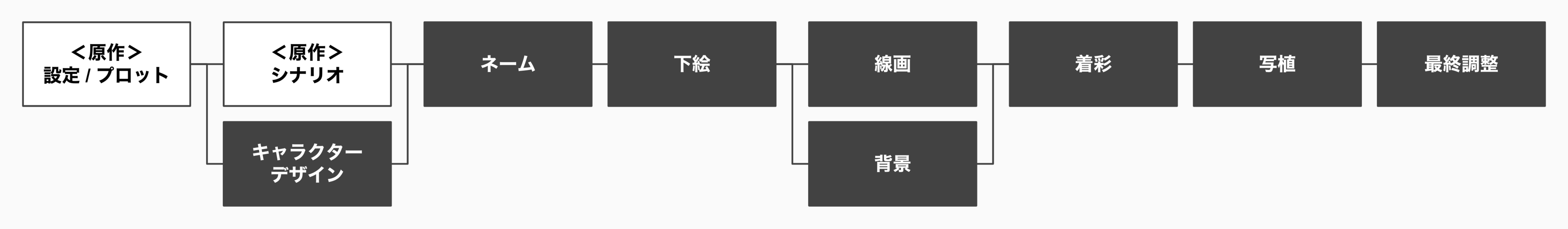これらの実績を通して培ったストーリーテリング・エフェクト・表現のノウハウ、UXデザインやクリエイティブに関するノウハウなどを応用し、ネーム制作から編集、キャラクターデザイン、ラフ、線画、着彩、写植といった制作における全ての範囲を受託事業として展開し、スマホでの漫画体験を追及してまいります。