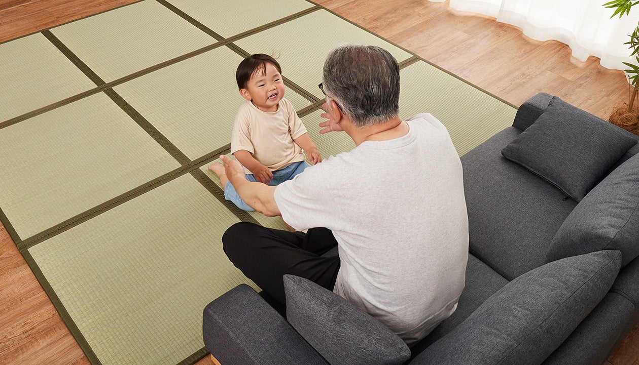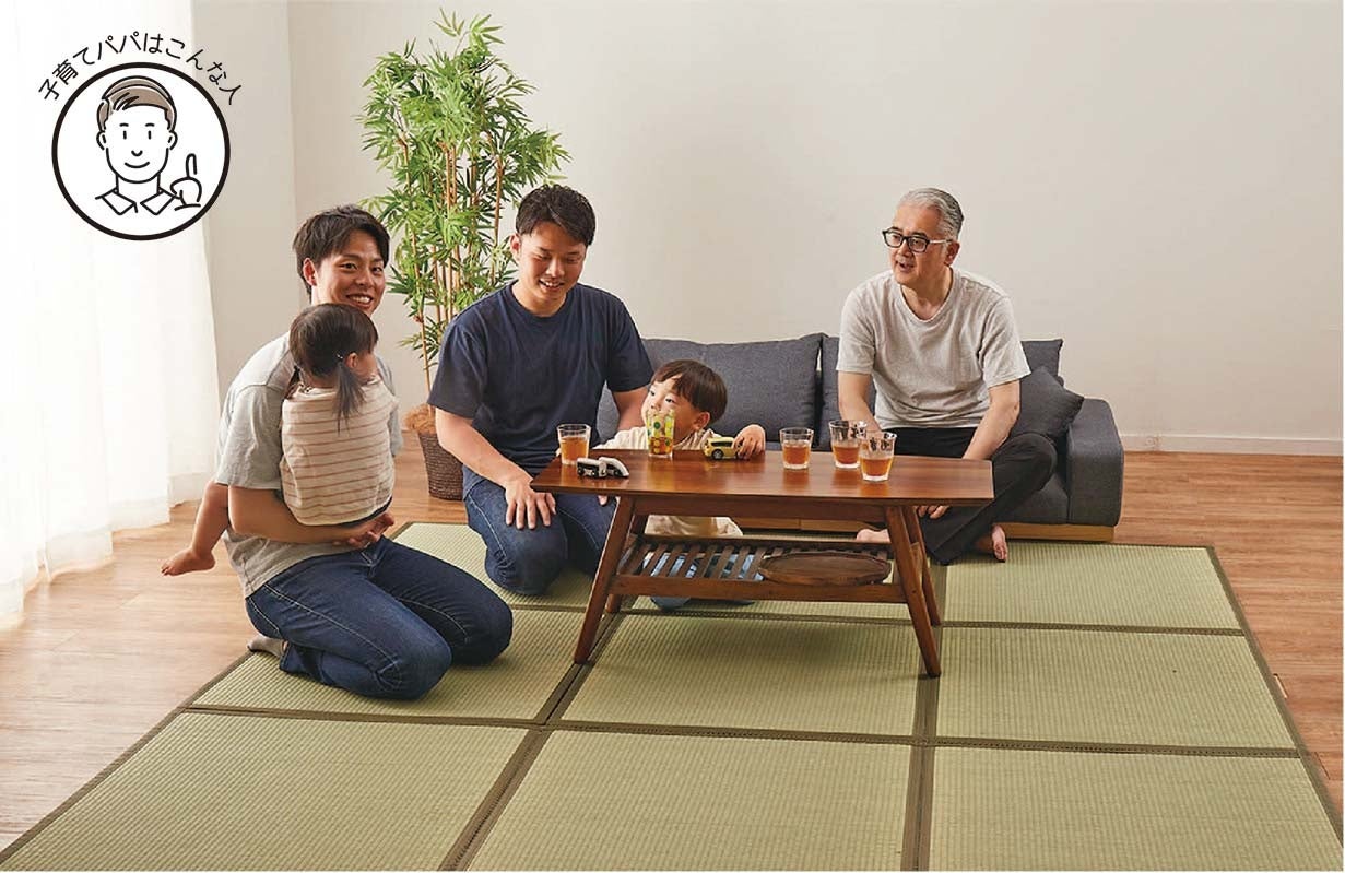 営業として、い草の販売に尽力しながら2歳の子供を溺愛するパパ。自社商品を自宅で使うなかで、もっと使いやすい商品にしたいという思いから、「隙の無い置き畳」が生まれました。