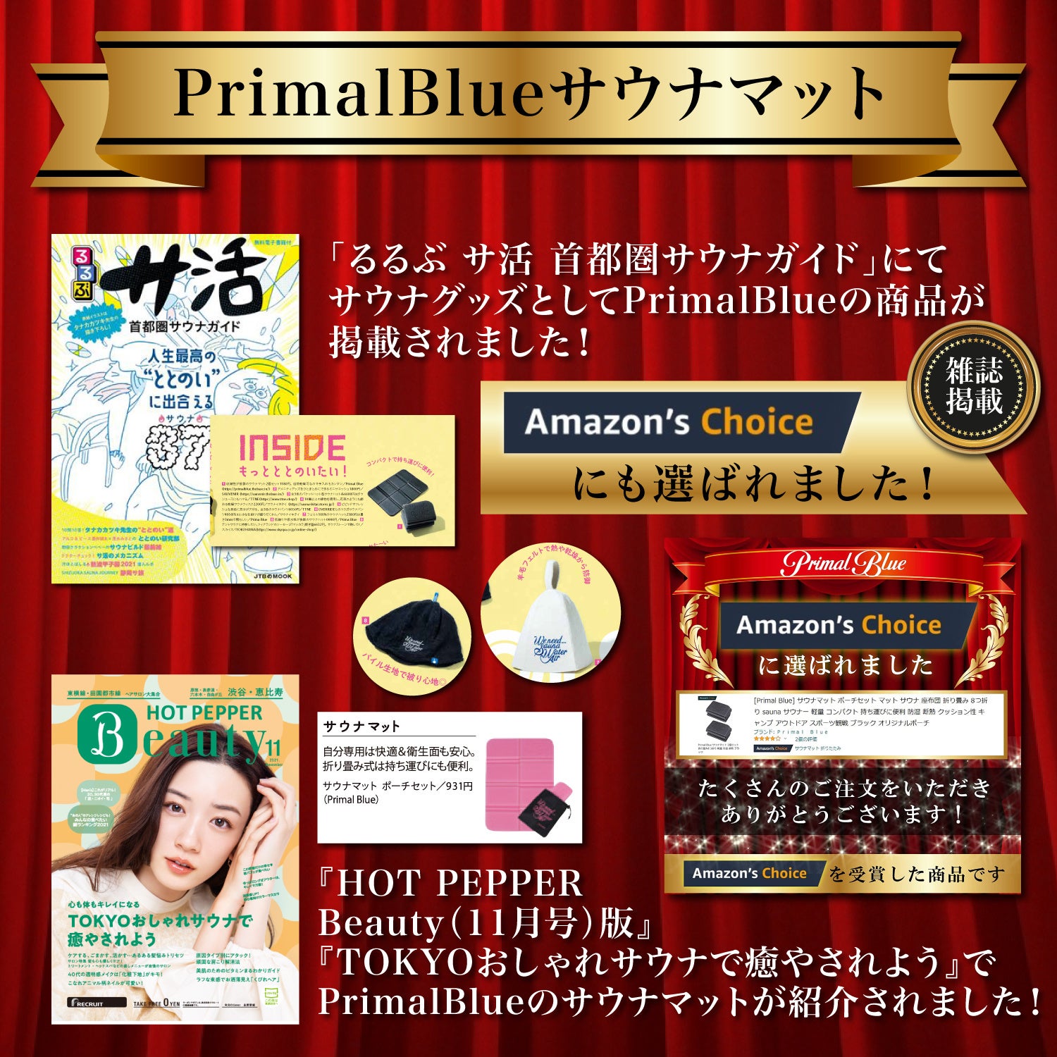 「るるぶ サ活首都圏サウナガイド」「ホットペッパービューティ」「with2月号」など雑誌にもPrimalBlueのサウナハットやサウナマットが掲載されました!